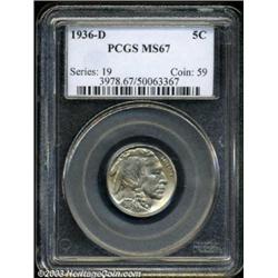 <TABLE cellSpacing=0 cellPadding=0 width="100%" bgColor=#000000 border=0><TBODY><TR><TD width="100%"><TABLE cellSpacing=1 cellPadding=3 width="100%" border=0><TBODY><TR><TD width="100%" bgColor=#79735c><FONT face=arial color=#ffffff size=3><B>Description</B> </FONT></TD></TR><TR><TD width="100%" bgColor=#ffffff><FONT face=arial size=2><B>1936-D 5C MS67 PCGS.</B></I> Sharply defined overall with silver-gray surfaces. Conditionally scarce as a Superb Gem. Population: 30 in 67, 2 finer (8/03). </FONT></TD></TR></TBODY></TABLE></TD></TR></TBODY></TABLE><BR><A name=PricesRealized></A><TABLE cellSpacing=0 cellPadding=0 width="100%" bgColor=#000000 border=0><TBODY><TR><TD width="100%"><TABLE cellSpacing=1 cellPadding=3 width="100%" border=0><TBODY><TR><TD width="100%" bgColor=#79735c><A name=PR><FONT face=arial color=#ffffff size=3><B>Previous Prices from Heritage Auctions</B> </FONT></A></TD></TR><TR><TD bgColor=#f6f6ed><TABLE cellSpacing=0 cellPadding=0 width="100%" border=1><TBODY><TR><TD align=middle width="33%"><B>Date</B></TD><TD align=middle width="33%"><B>Service</B></TD><TD align=middle width="33%"><B>Price</B></TD></TR><TR bgColor=whitesmoke><TD width="33%"><B>04/27/2002</B></TD><TD width="33%">PCGS</TD><TD width="33%">$1,725.00</TD></TR><TR bgColor=whitesmoke><TD width="33%"><B>01/06/1996</B></TD><TD width="33%">PCGS</TD><TD width="33%">$440.00</TD></TR><TR bgColor=whitesmoke><TD width="33%"><B>01/06/1996</B></TD><TD width="33%">PCGS</TD><TD width="33%">$440.00</TD></TR><TR bgColor=whitesmoke><TD width="33%"><B>07/01/1996</B></TD><TD width="33%">PCGS</TD><TD width="33%">$770.00</TD></TR><TR bgColor=whitesmoke><TD width="33%"><B>06/01/2000</B></TD><TD width="33%">PCGS</TD><TD width="33%">$863.00</TD></TR><TR bgColor=whitesmoke><TD width="33%"><B>06/01/2000</B></TD><TD width="33%">PCGS</TD><TD width="33%">$863.00</TD></TR><TR bgColor=whitesmoke><TD width="33%"><B>03/01/2003</B></TD><TD width="33%">PCGS</TD><TD width="33%">$1,035.00</TD></TR><TR bgColor=whitesmoke><TD width="33%"><B>07/29/2003</B></TD><TD width="33%">PCGS</TD><TD width="33%">$1,150.00</TD></TR><TR bgColor=whitesmoke><TD width="33%"><B>07/29/2003</B></TD><TD width="33%">PCGS</TD><TD width="33%">$1,150.00</TD></TR><TR bgColor=whitesmoke><TD width="33%"><B>07/29/2003</B></TD><TD width="33%">PCGS</TD><TD width="33%">$1,207.50</TD></TR><TR bgColor=whitesmoke><TD width="33%"><B>05/03/2003</B></TD><TD width="33%">PCGS</TD><TD width="33%">$1,840.00</TD></TR><TR bgColor=whitesmoke><TD width="33%"><B>05/03/2003</B></TD><TD width="33%">PCGS</TD><TD width="33%">$1,840.00</TD></TR></TBODY></TABLE></TD></TR><TR><TD bgColor=#ffffff><FONT face=arial size=1 ?>PLEASE NOTE: All prices realized reflect the final hammer price PLUS the buyer's premium in auctions that charge a buyer's premium. Each item has a notation at the top of the listing indicating whether that lot included a buyer's premium. Example: A item that sells with a final hammer price of $100 and a 20% buyer's premium will display with a price realized of $120. All information listed is intended to be as accurate as possible, but errors are possible. Please use this guide carefully and inform us of any inaccuracies. </FONT></TD></TR></TBODY></TABLE></TD></TR></TBODY></TABLE><BR><TABLE cellSpacing=0 cellPadding=0 width="100%" bgColor=#000000 border=0><TBODY><TR><TD width="100%"><TABLE cellSpacing=1 cellPadding=3 width="100%" border=0><TBODY><TR><TD width="100%" bgColor=#79735c colSpan=6><FONT face=arial color=#ffffff size=3><B>Price Guide*</B> </FONT></TD></TR><TR bgColor=#f6f6ed><TD align=middle><B>Grade</B> </TD><TD align=middle><B>Coin World<BR>(Trends)</B> </TD><TD align=middle><B>Numismedia<BR>Retail</B> </TD><TD align=middle><B>Numismedia<BR>Wholesale</B> </TD><TD align=middle><B>Coin<BR>Universe</B> </TD><TD align=middle><B>Heritage<BR>Value Index</B> </TD></TR><TR bgColor=#ffffff><TD align=middle>66</TD><TD align=right>$250.00</TD><TD align=right>$220.00</TD><TD align=right>$176.00</TD><TD align=right>$235.00</TD><TD align=right>$174.83</TD></TR><TR style="FONT-WEIGHT: bold" bgColor=#cccfdd><TD align=middle>67</TD><TD align=right>---</TD><TD align=right>---</TD><TD align=right>$845.00</TD><TD align=right>$1,500.00</TD><TD align=right>$1,128.75</TD></TR><TR bgColor=#ffffff><TD align=middle>68</TD><TD align=right>---</TD><TD align=right>---</TD><TD align=right>$15,000.00</TD><TD align=right>---</TD><TD align=right>---</TD></TR><TR bgColor=#ffffff><TD colSpan=6><FONT size=1>*All information listed is intended to be as accurate as possible, but errors are possible. No item may be returned or refused based on this information which is provided as a service to our customers. You should contact each pricing source directly to determine the accuracy of this information. </FONT></TD></TR></TBODY></TABLE></TD></TR></TBODY></TABLE><BR><TABLE cellSpacing=0 cellPadding=0 width="100%" bgColor=#000000 border=0><TBODY><TR><TD width="100%"><TABLE cellSpacing=1 cellPadding=3 width="100%" border=0><TBODY><TR><TD width="100%" bgColor=#79735c><FONT face=arial color=#ffffff size=3><B>Population Guide</B> </FONT></TD></TR><TR bgColor=#ffffff><TD align=middle><!-- Begin Output of Population Grid--><TABLE cellSpacing=0 cellPadding=0 width="100%" border=0><TBODY><TR><TD vAlign=center><TABLE cellSpacing=0 width="100%" border=1 cellsadding="3"><TBODY><TR><TD vAlign=center><TABLE cellSpacing=0 cellPadding=3 width="100%" border=1><TBODY><TR><TD vAlign=center align=middle bgColor=#f0f1e8 colSpan=2 <CENTER><FONT face=Arial size=2><B>PCGS Pop </B></FONT><CENTER></CENTER></TD><TD vAlign=center align=middle bgColor=#f0f1e8 colSpan=2><CENTER><FONT face=Arial size=2><B>NGC Pop</B></CENTER></FONT></TD></TR><TR><TD vAlign=center><FONT face=Arial size=2>(67)</FONT> </TD><TD vAlign=center align=right><FONT face=Arial size=2>30</FONT> </TD><TD vAlign=center><FONT face=Arial size=2>(67)</FONT> </TD><TD vAlign=center align=right><FONT face=Arial size=2>4</FONT> </TD></TR><TR><TD vAlign=center><FONT face=Arial si