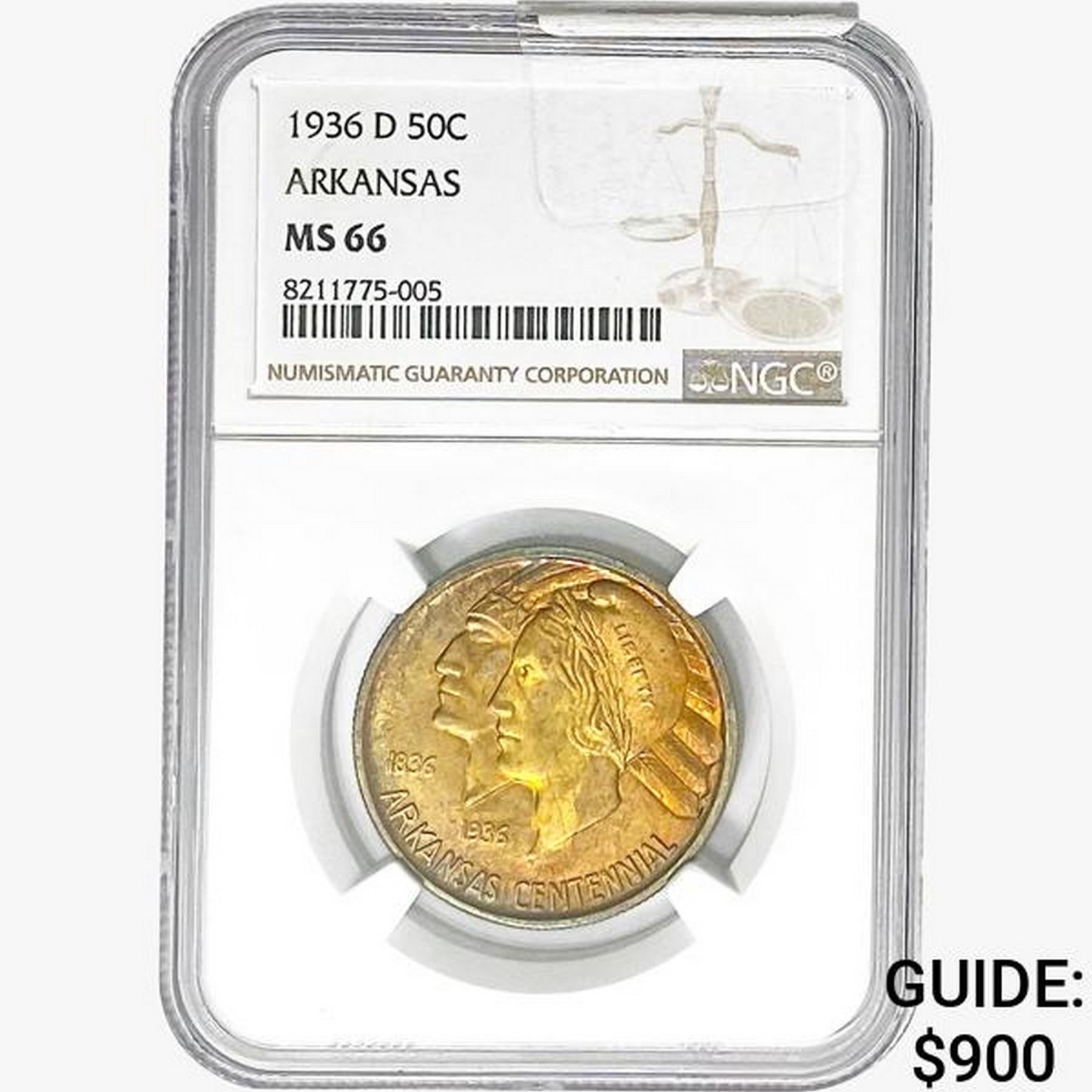 1936-D Arkansas Half Dollar NGC MS66