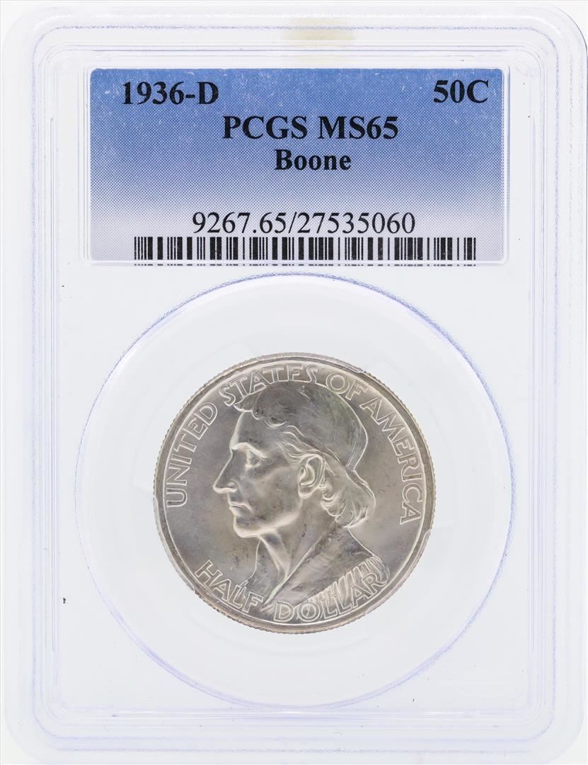 One 1936-D Boone Commemorative Half Dollar Coin PCGS MS65. PCGS Graded.