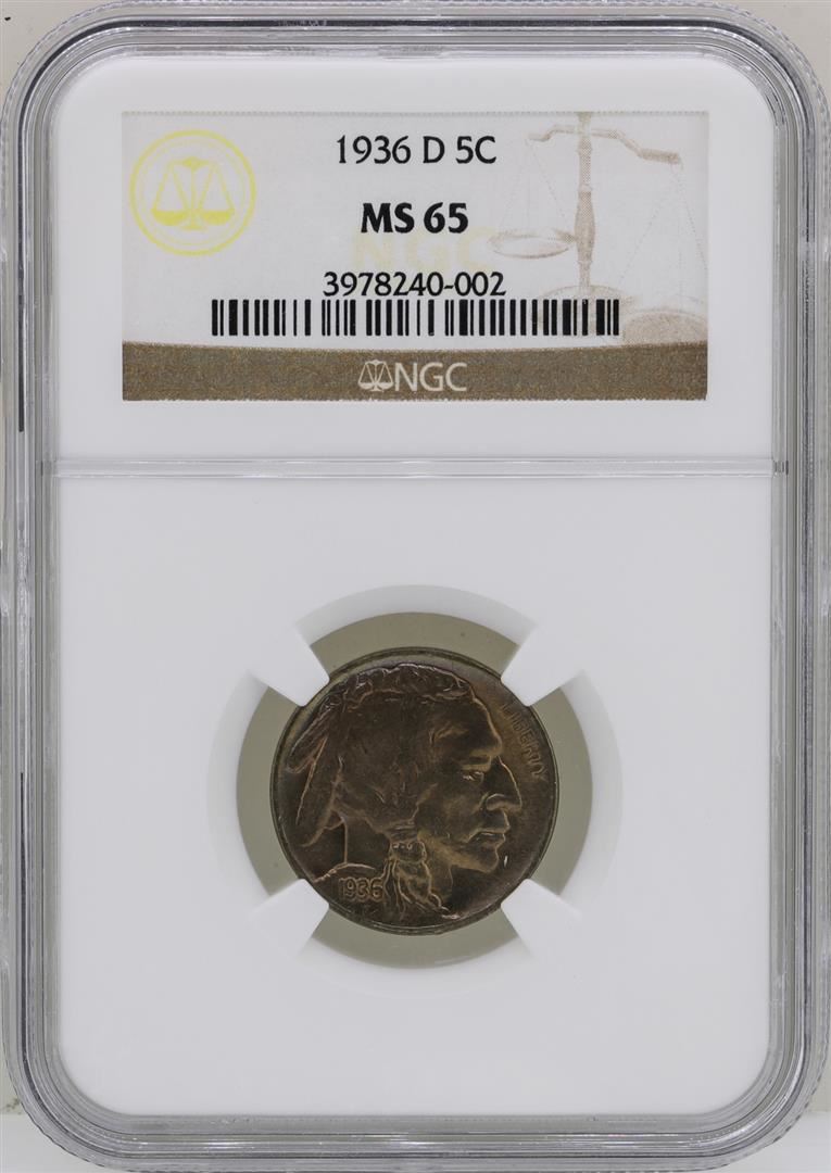 One 1936-D Buffalo Nickel Coin NGC MS65. NGC Certified.