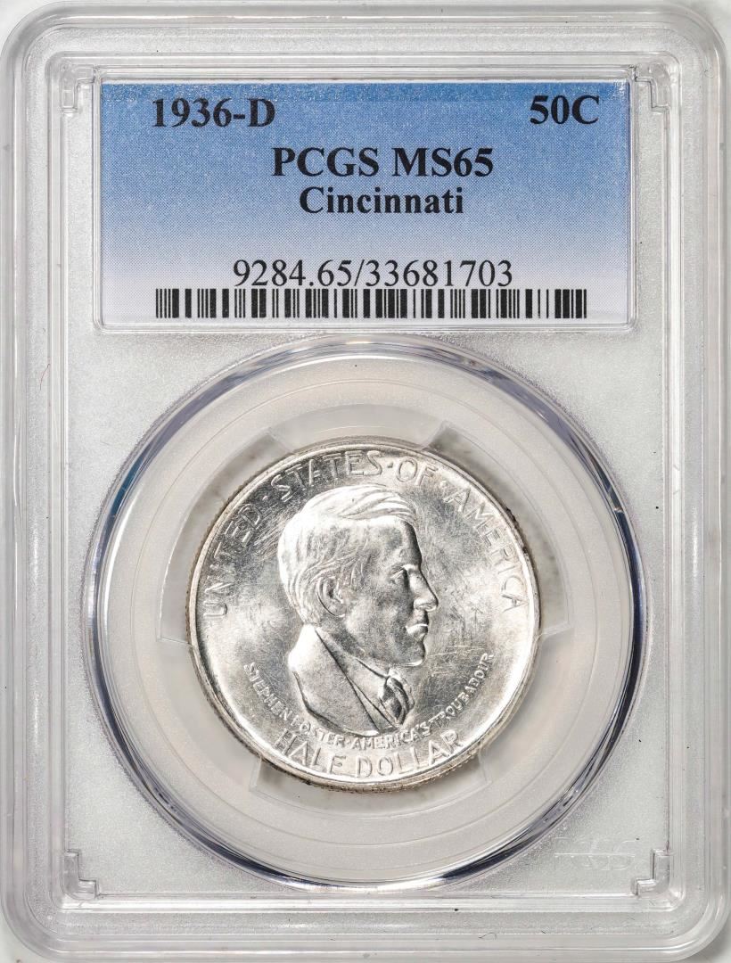 One 1936-D Cincinnati Commemorative Half Dollar Coin PCGS MS65. PCGS Graded.