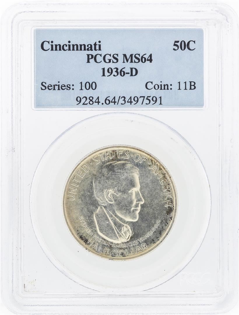 One 1936-D Cincinnati Music Center Commemorative Half Dollar Coin PCGS MS64. PCGS Graded.
