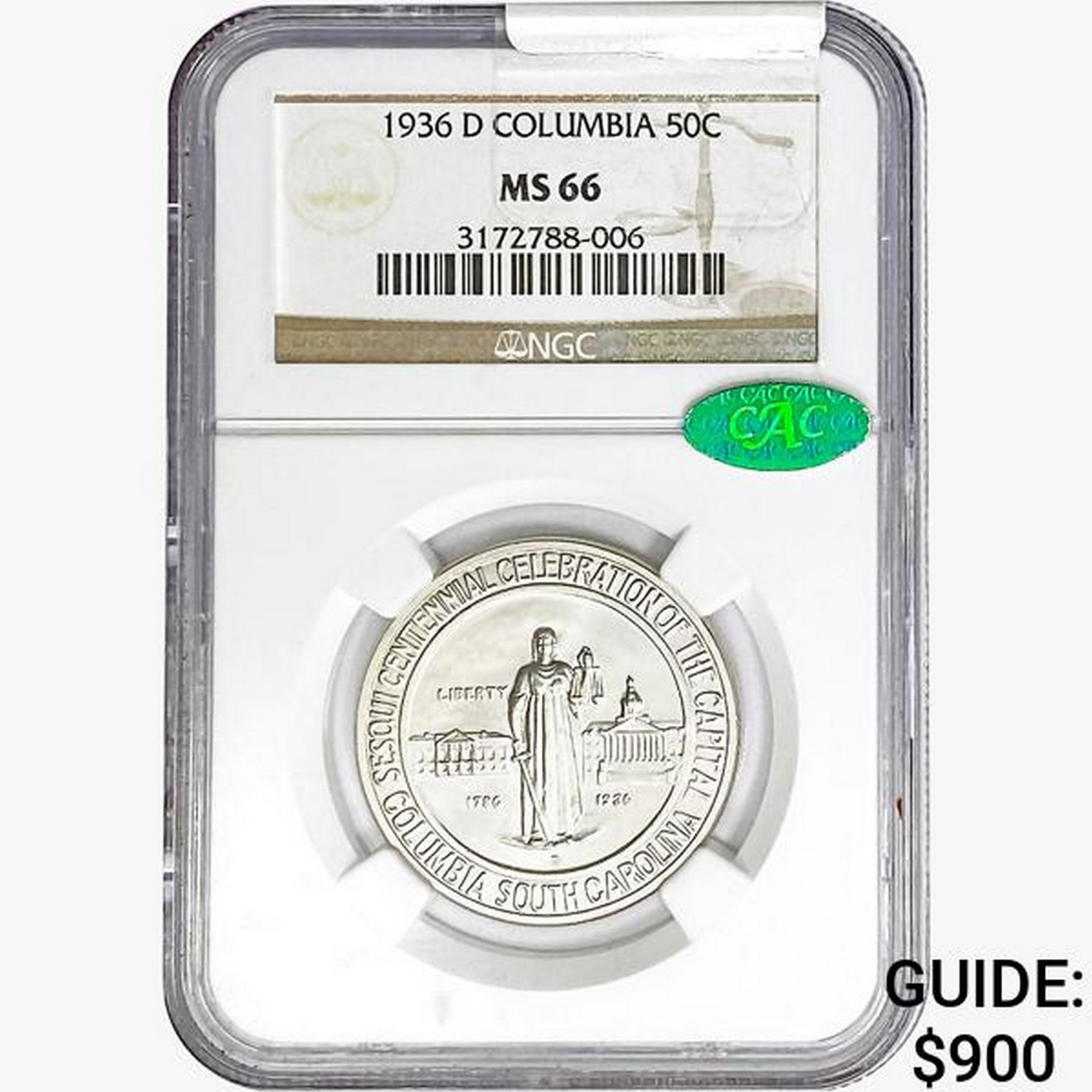1936-D Columbia Half Dollar NGC MS66