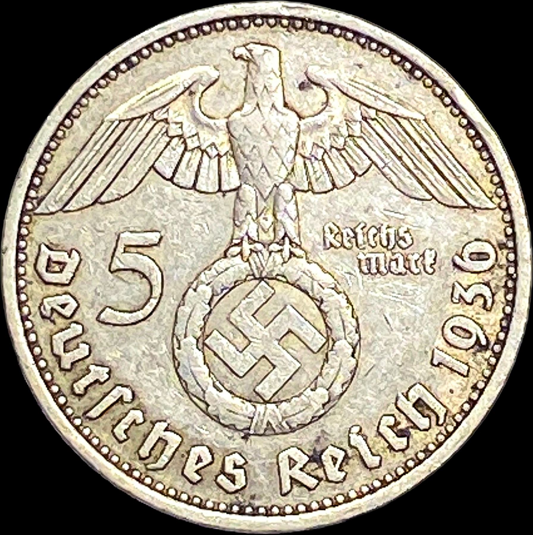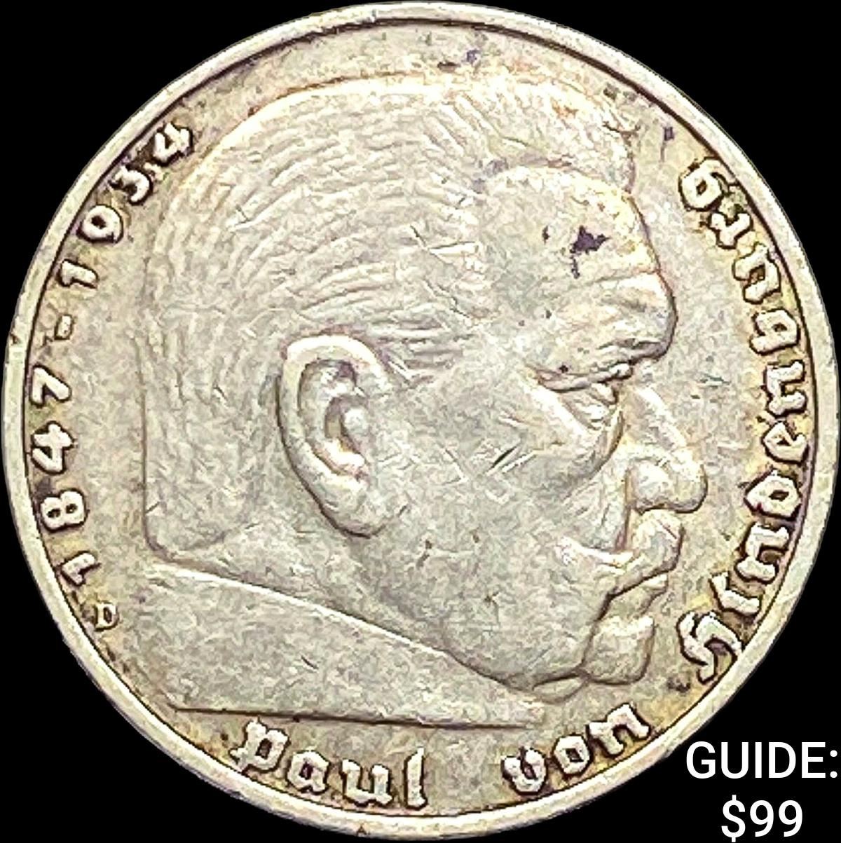 1936-D Germany Siler 5 Reichsmark CLOSELY UNCIRCULATED