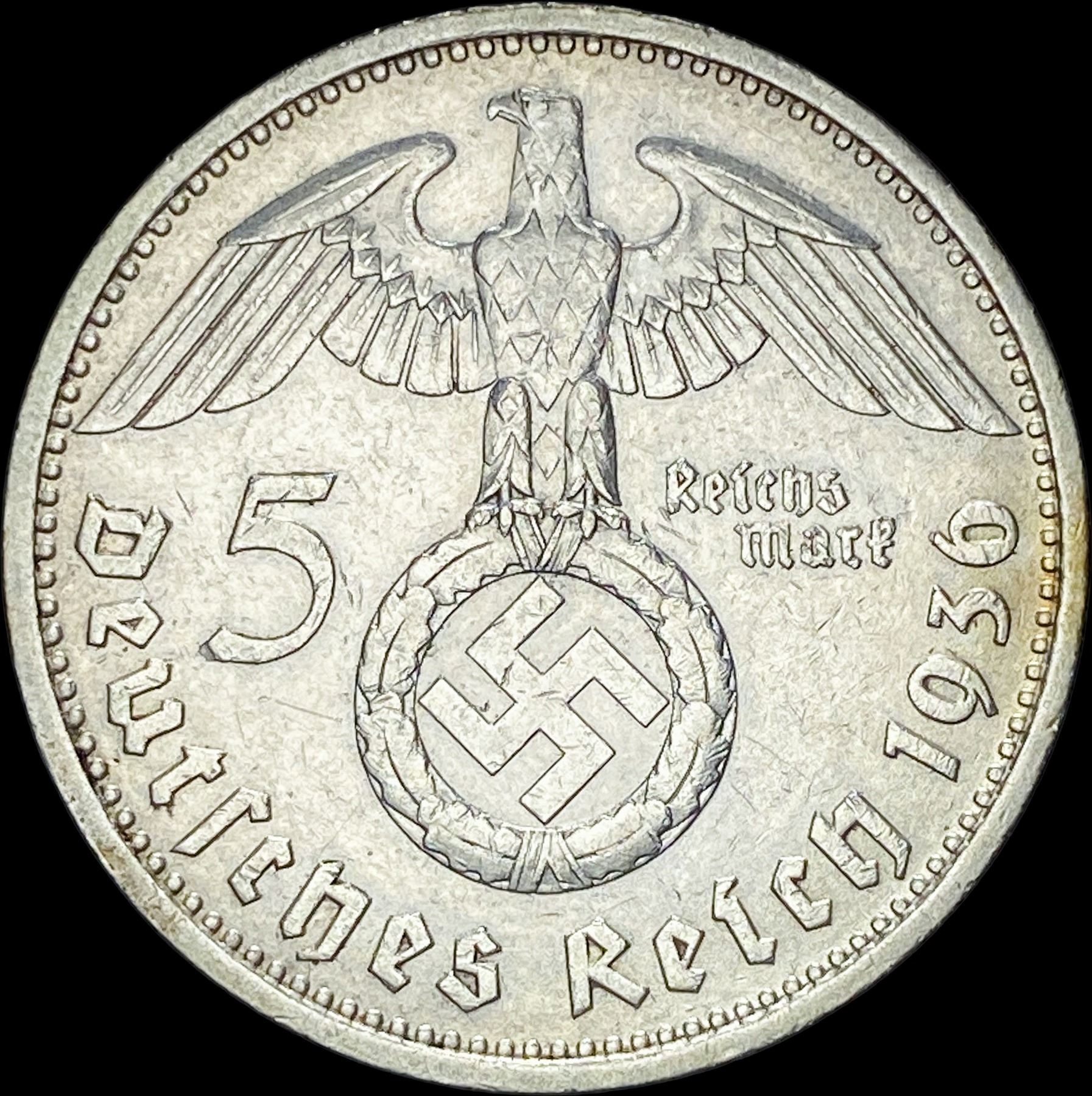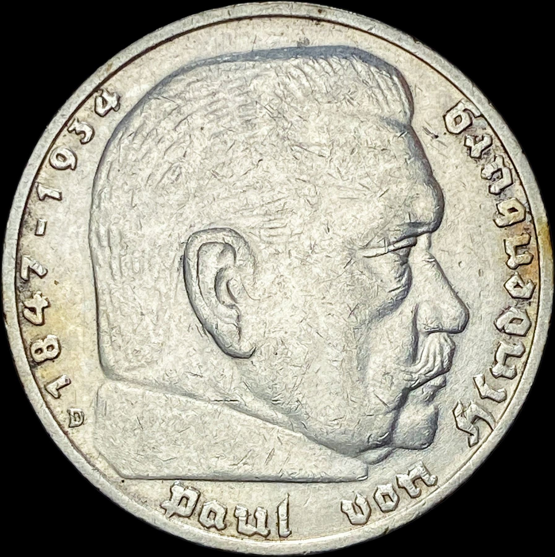 1936-D Germany Silver 5 Reichsmark CLOSELY UNCIRCULATED
