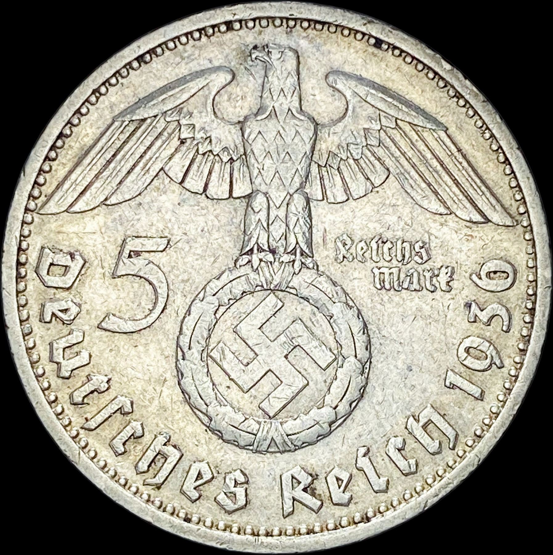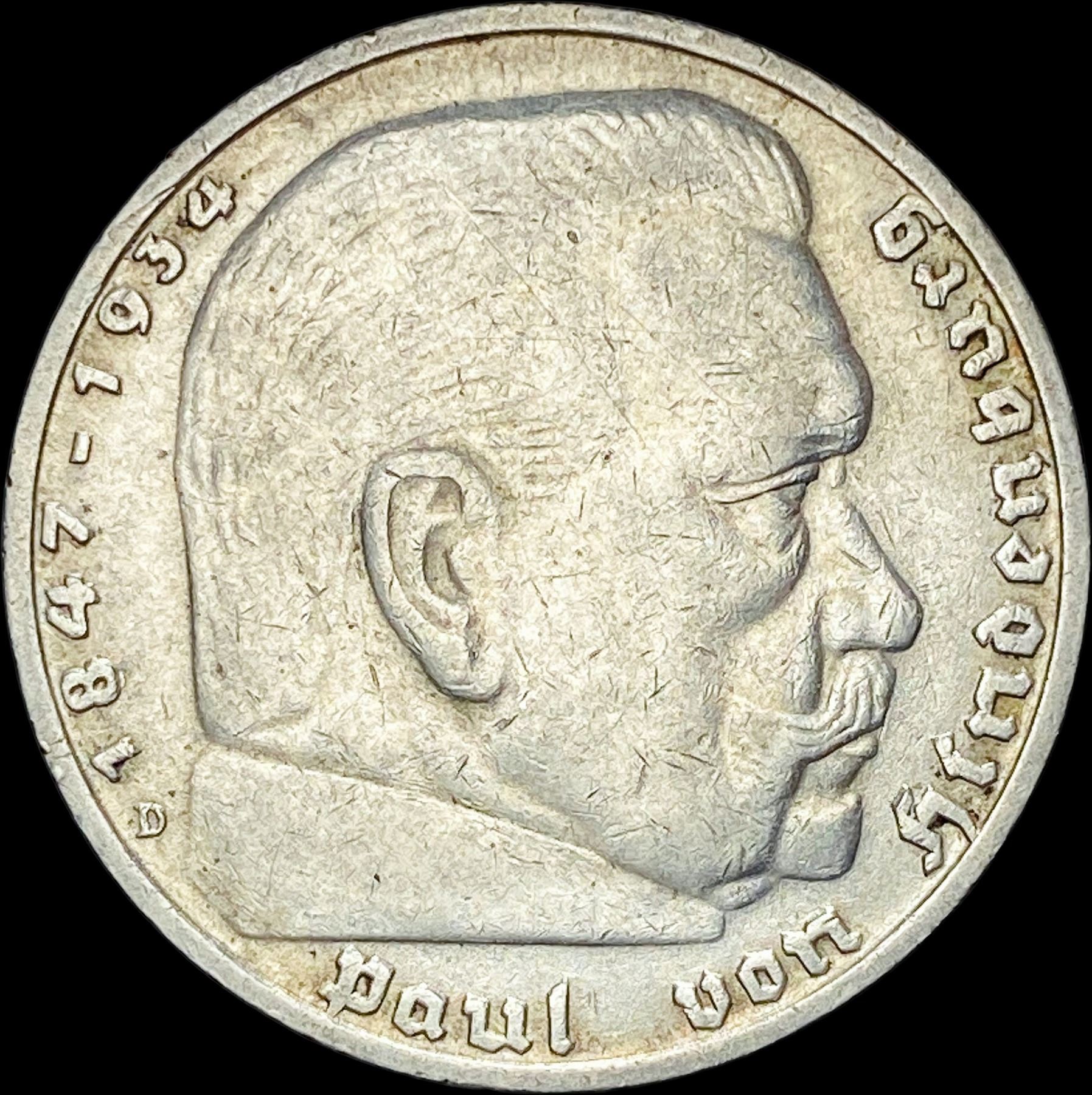1936-D Germany Silver 5 Reichsmark CLOSELY UNCIRCULATED