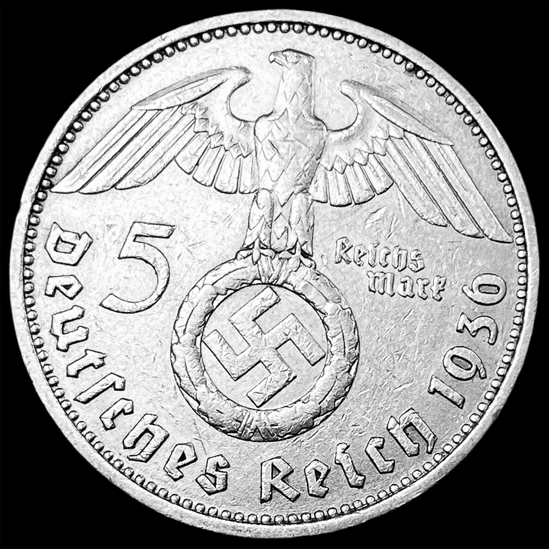 1936-D Germany Silver 5 Reichsmark CLOSELY UNCIRCULATED