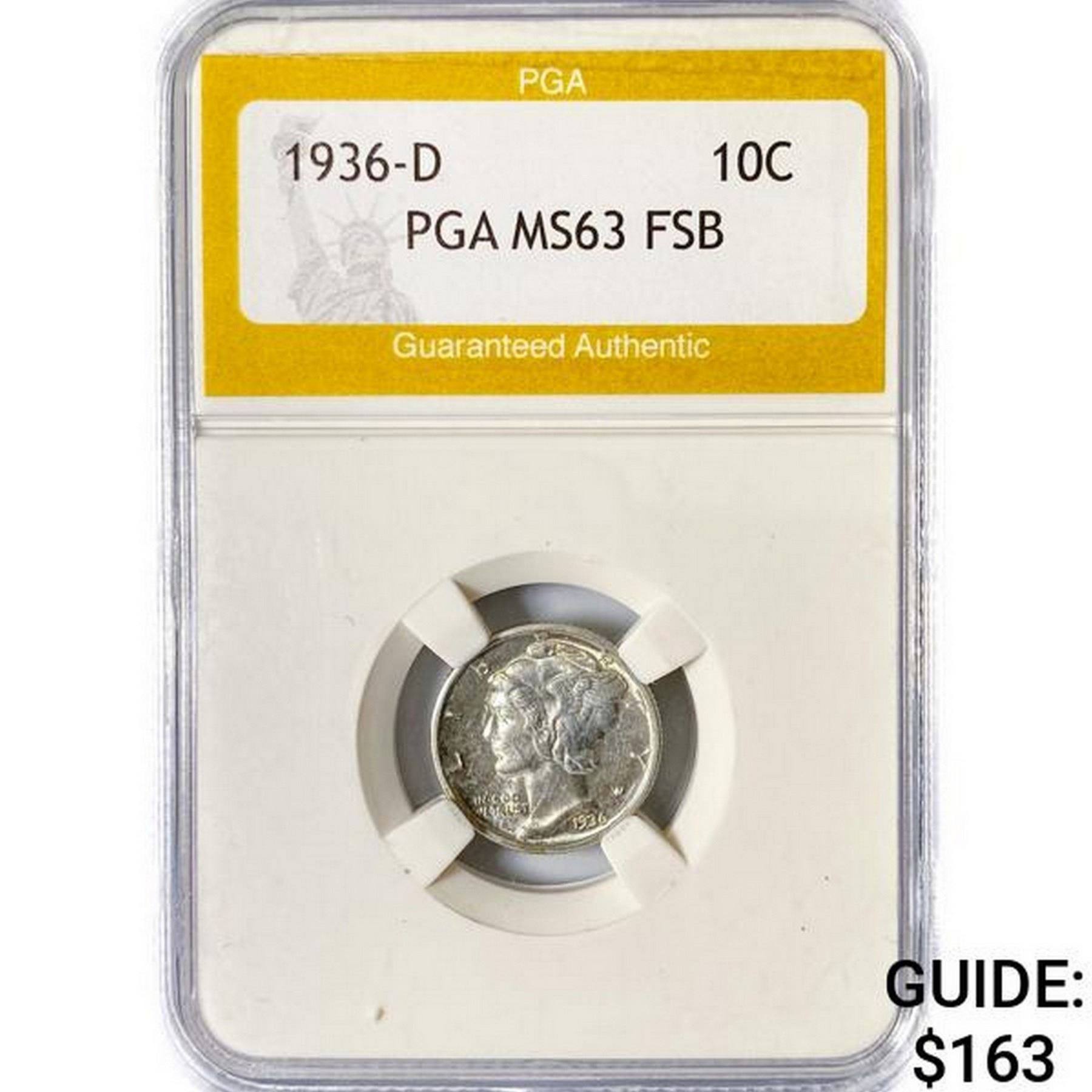 1936-D Mercury Silver Dime PGA MS63 FSB