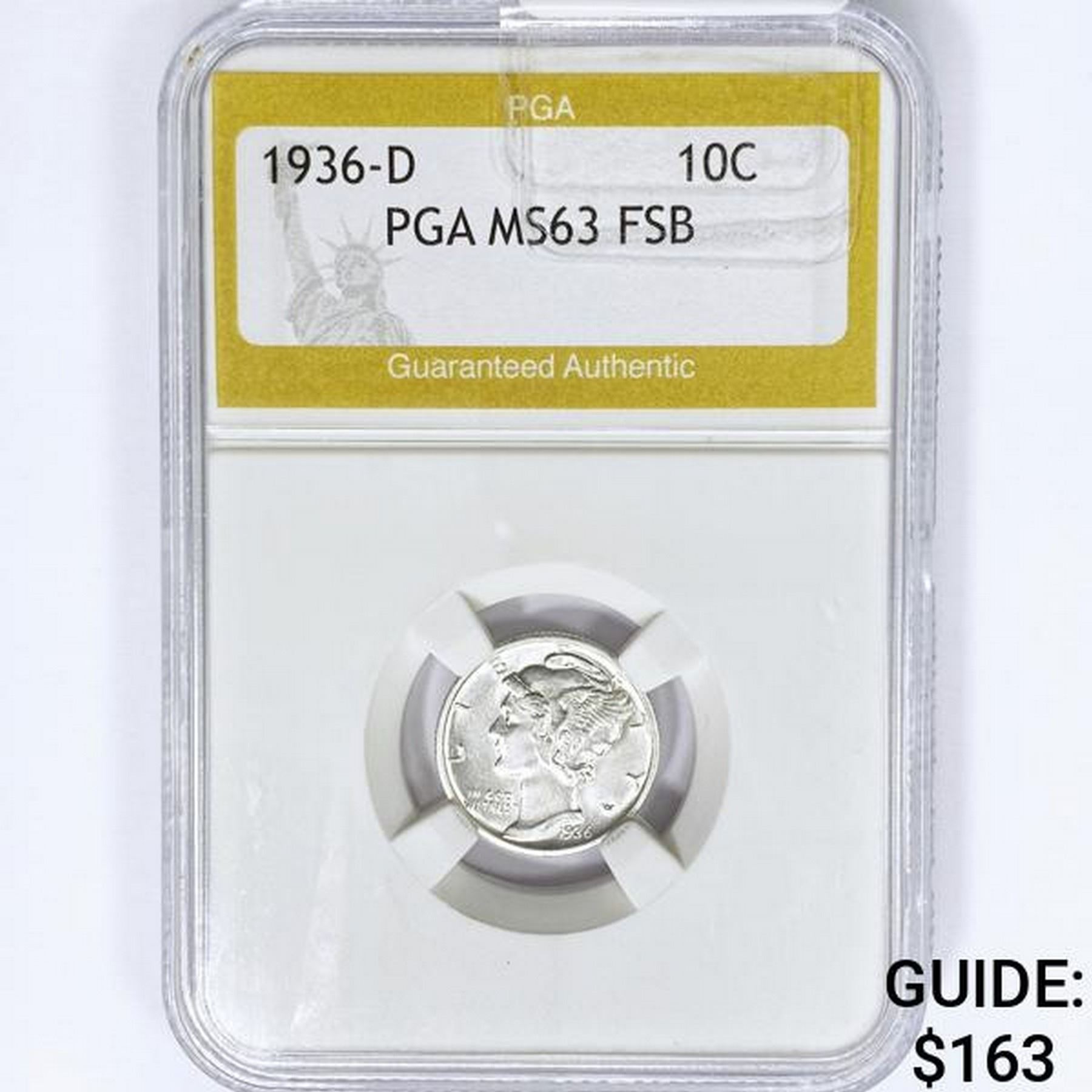 1936-D Mercury Silver Dime PGA MS63 FSB