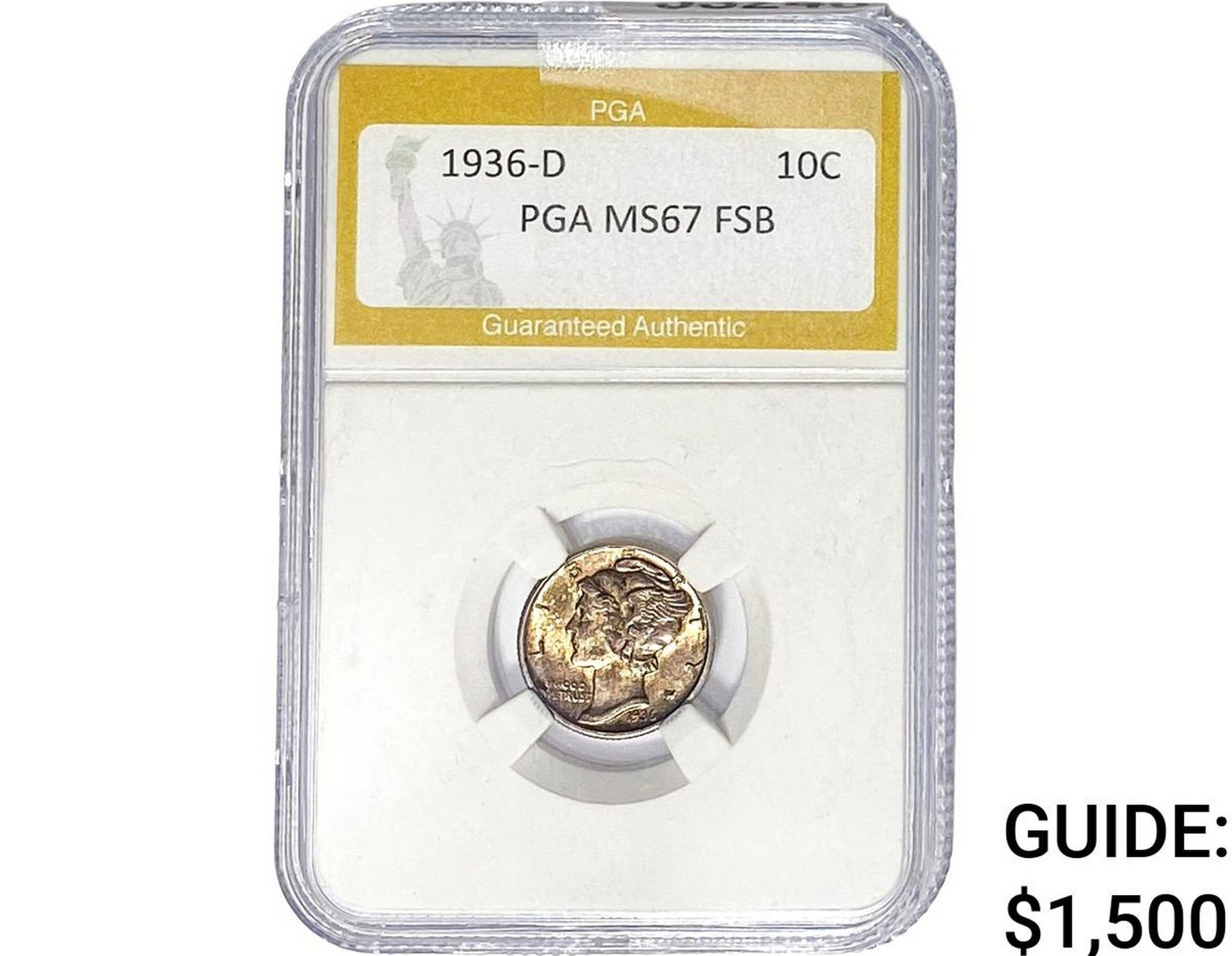 1936-D Mercury Silver Dime PGA MS67 FSB