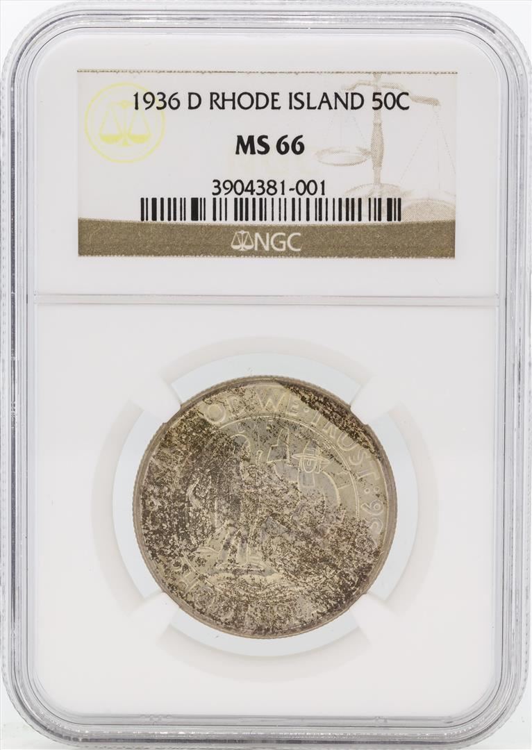 One 1936-D Providence Rhode Island Tercentenary Commemorative Half Dollar Coin NGC MS66. NGC Certified.