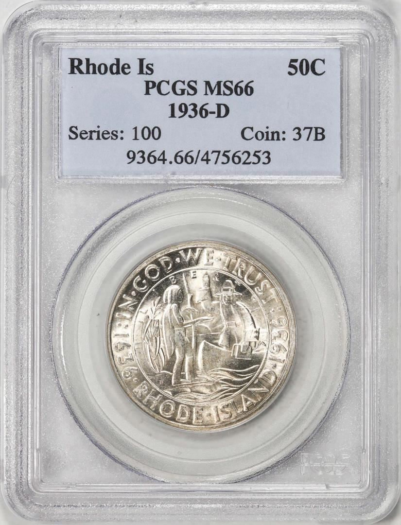1936-D Rhode Island Tercentenary Commemorative Half Dollar Coin PCGS MS66