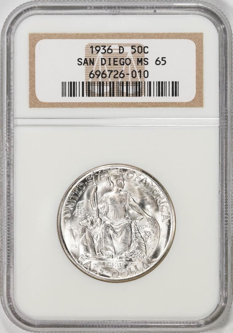 One 1936-D San Diego Commemorative Half Dollar Coin NGC MS65. NGC Certified.