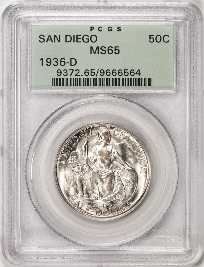 1936-D San Diego Commemorative Half Dollar Coin PCGS MS65 Old Green Holder