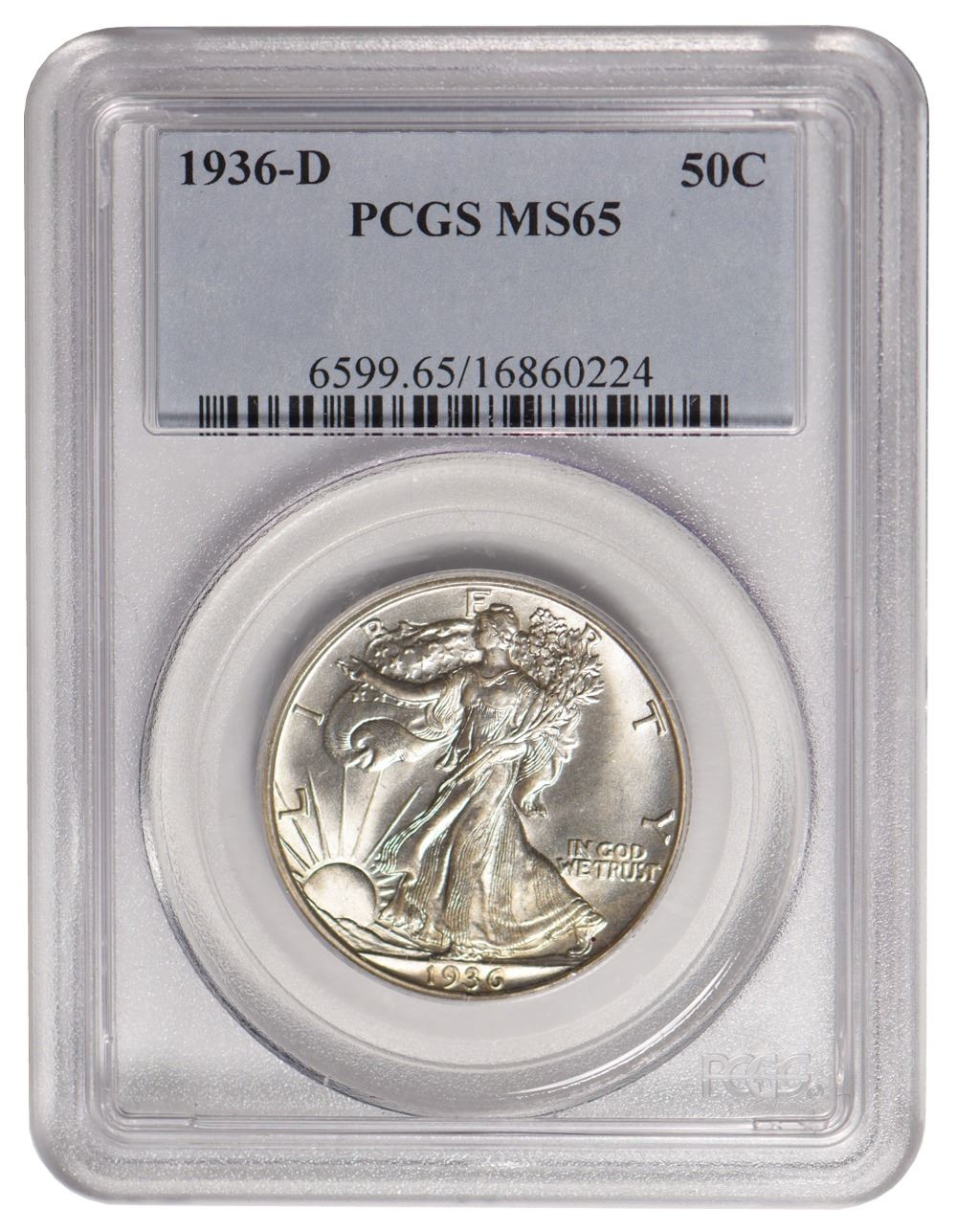 One 1936-D Walking Liberty Half Dollar PCGS MS65.