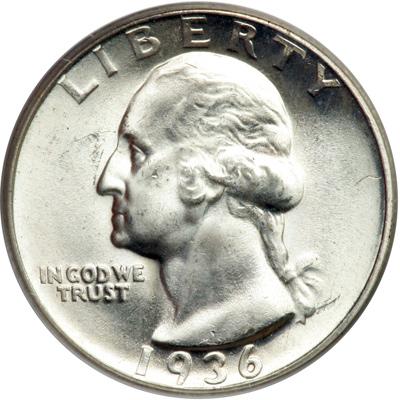 1936-D Washington Quarter Dollar. PCGS graded MS-65. Old Green Holder. A lovely gem. A frosty coin. One whose appearance and near-pristine originality cautions bidders to bid forcefully or forever be left out in the cold. Pop 278; 117 finer, 108 in 66, 9 in 67 (PCGS # 5801) .