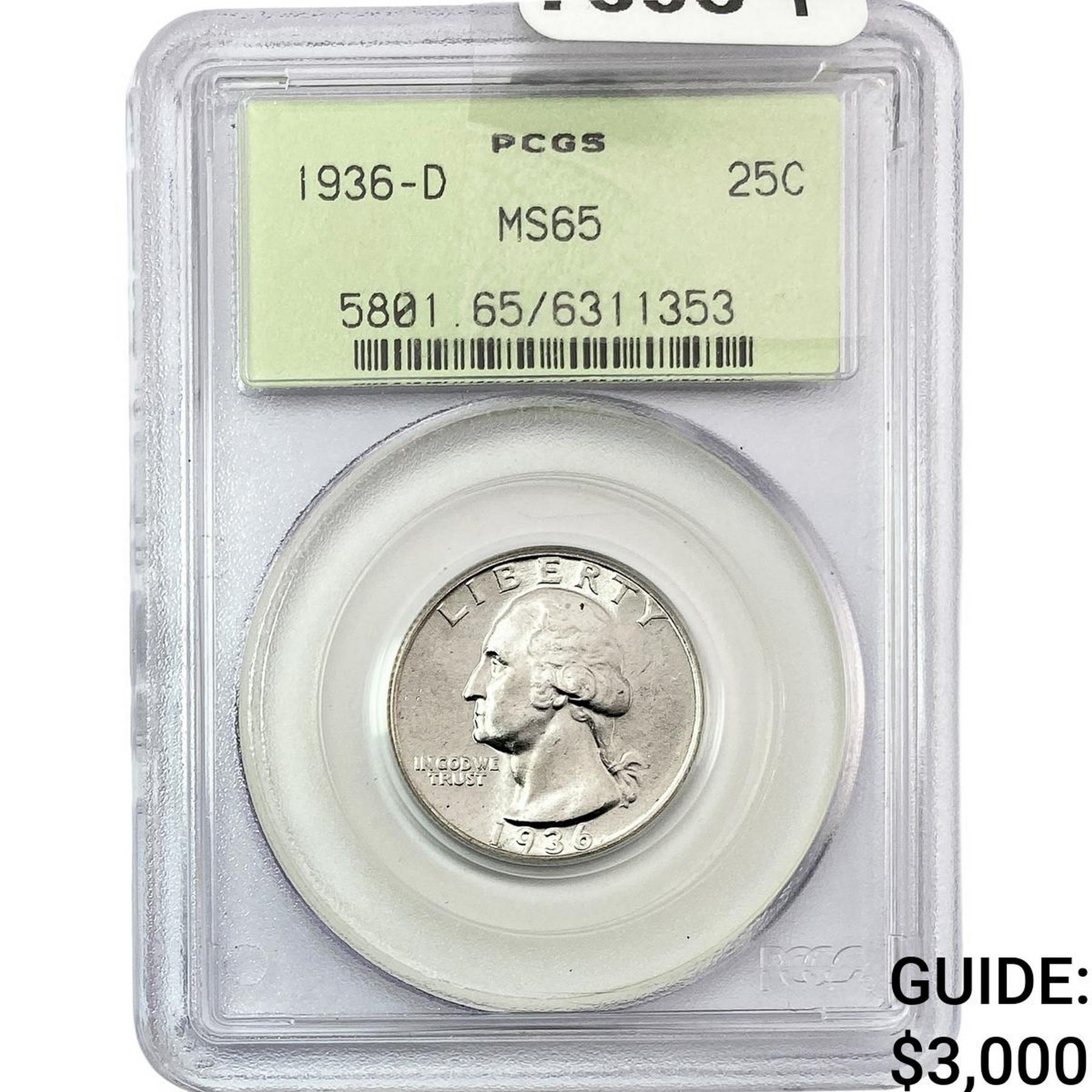 1936-D Washington Silver Quarter PCGS MS65
