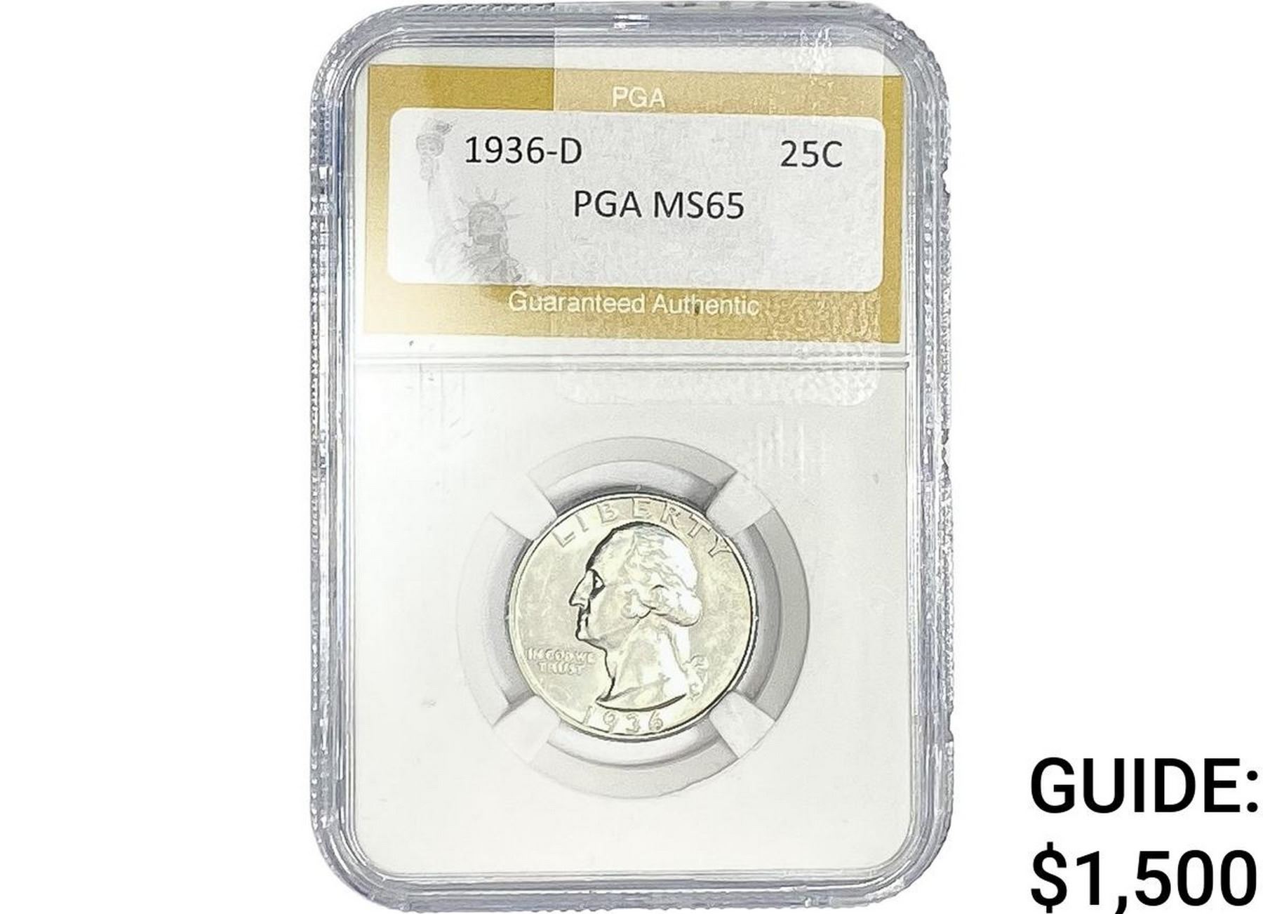 1936-D Washington Silver Quarter PGA MS65