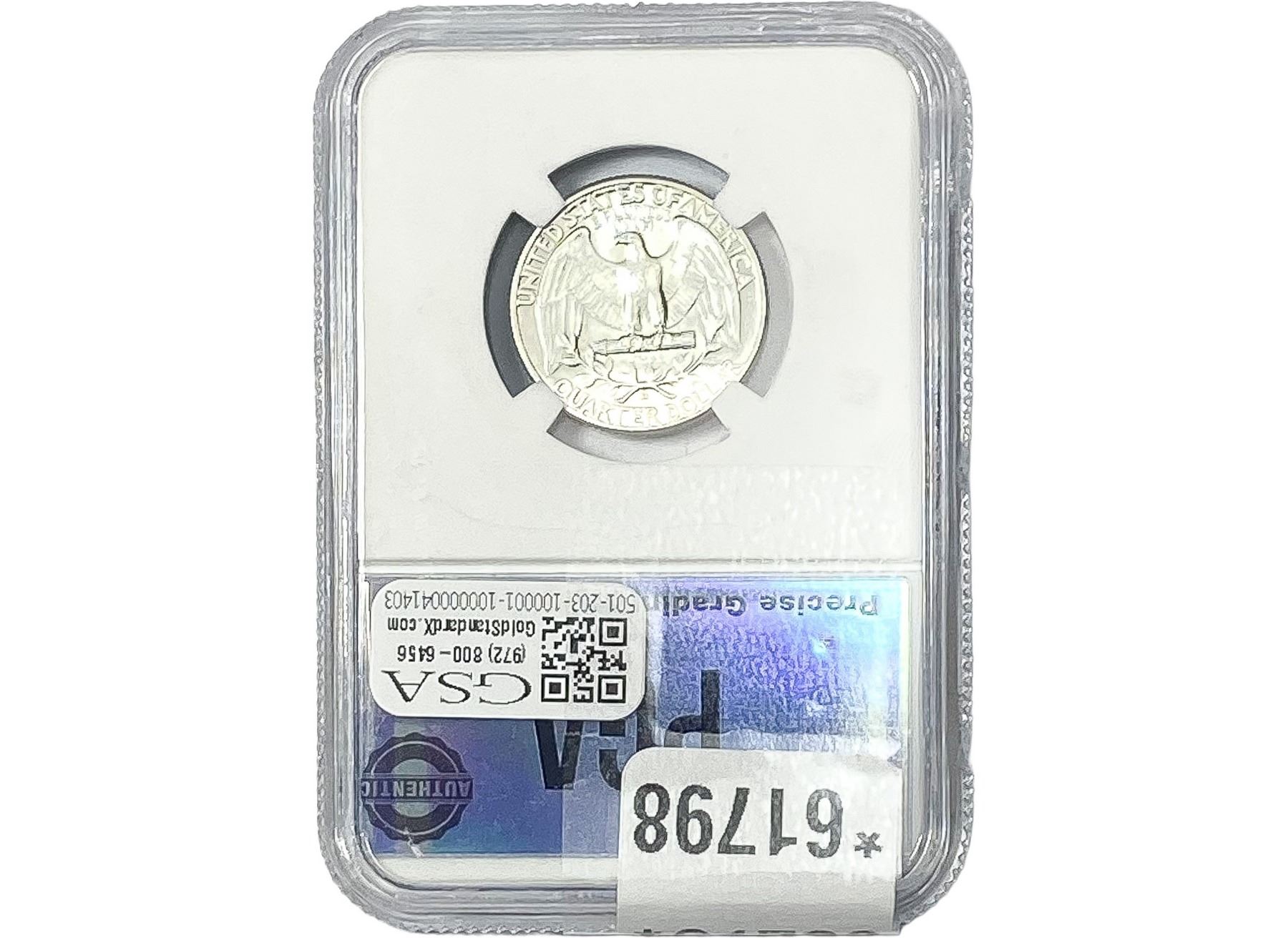 e. Coins sold referencing a third-party grading service are sold “AS IS” without any express or implied warranty, except for a guarantee by GSA that they are genuine. Removal or alteration of the holder, voids all of Bidder’s claims concerning that Product. Certain warranties may be available from the grading services and Bidders are referred to them for further details: Numismatic Guaranty Corporation (NGC), PO Box 4776, Sarasota, FL 34230, www.ngccoin.com/services/writtenguarantee.asp; Professional Coin Grading Services (PCGS), PO Box 9458, Newport Beach, CA 92658, www.pcgs.com/guarantee.html; ANACS, 6555 S. Kenton St., Ste. 303, Englewood, CO 80111; and Independent Coin Grading Co. (ICG), 7901 East Bellview, Ave., Suite 50, Englewood, CO 80111.
