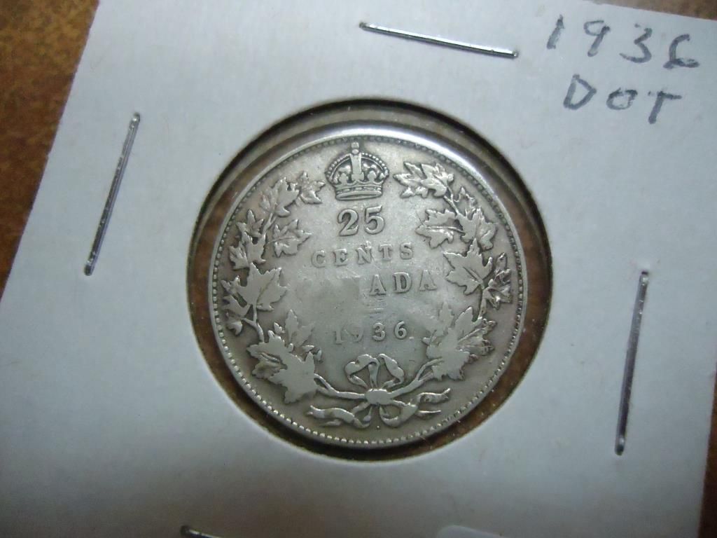 1936 DOT CANADA SILVER 25 CENTS SEMI KEY