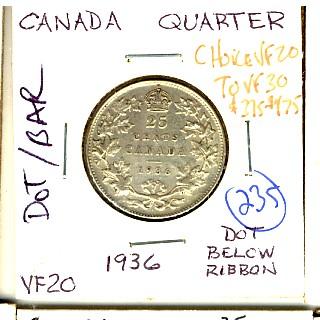 1936 Dot/Bar 25¢ VF20 perhaps better.