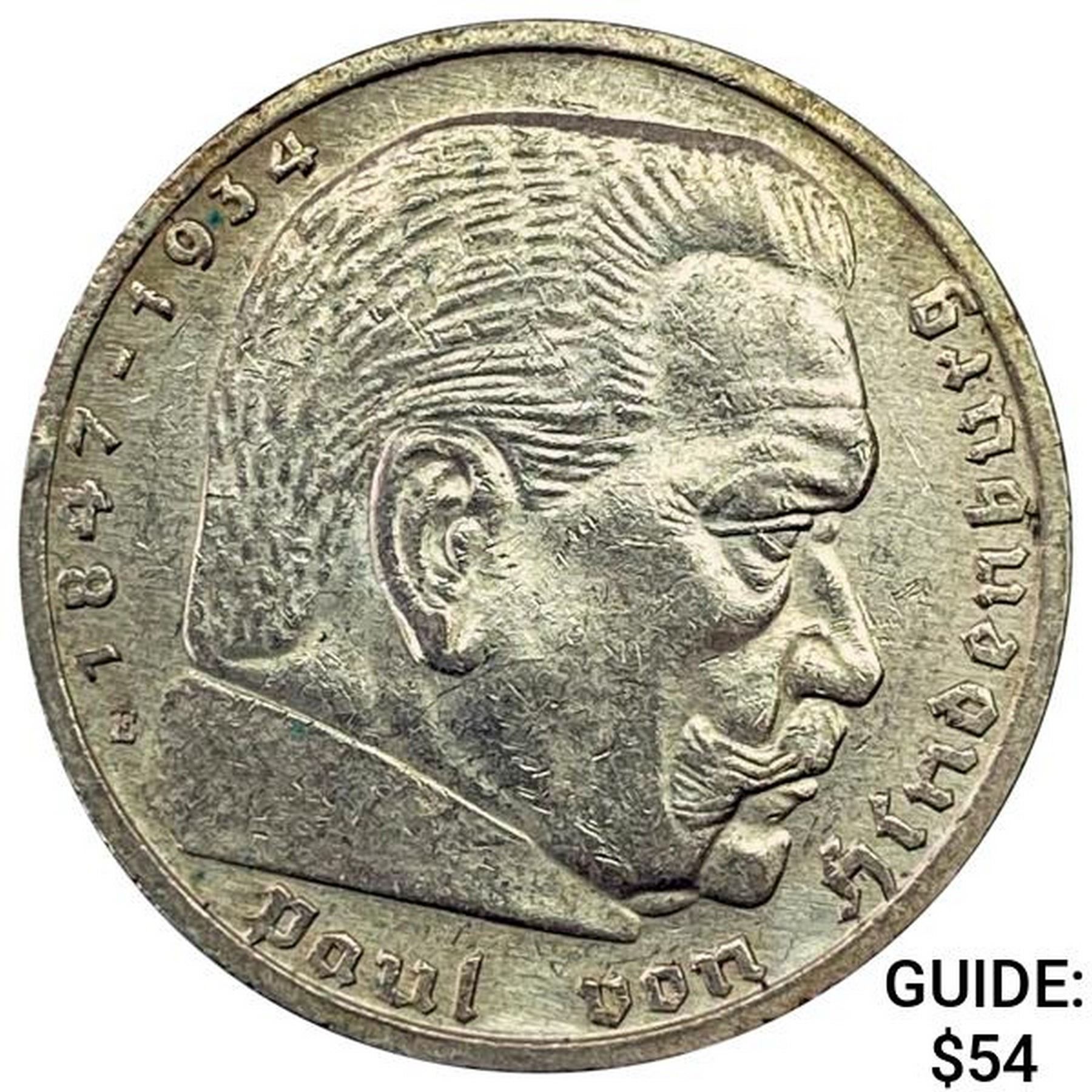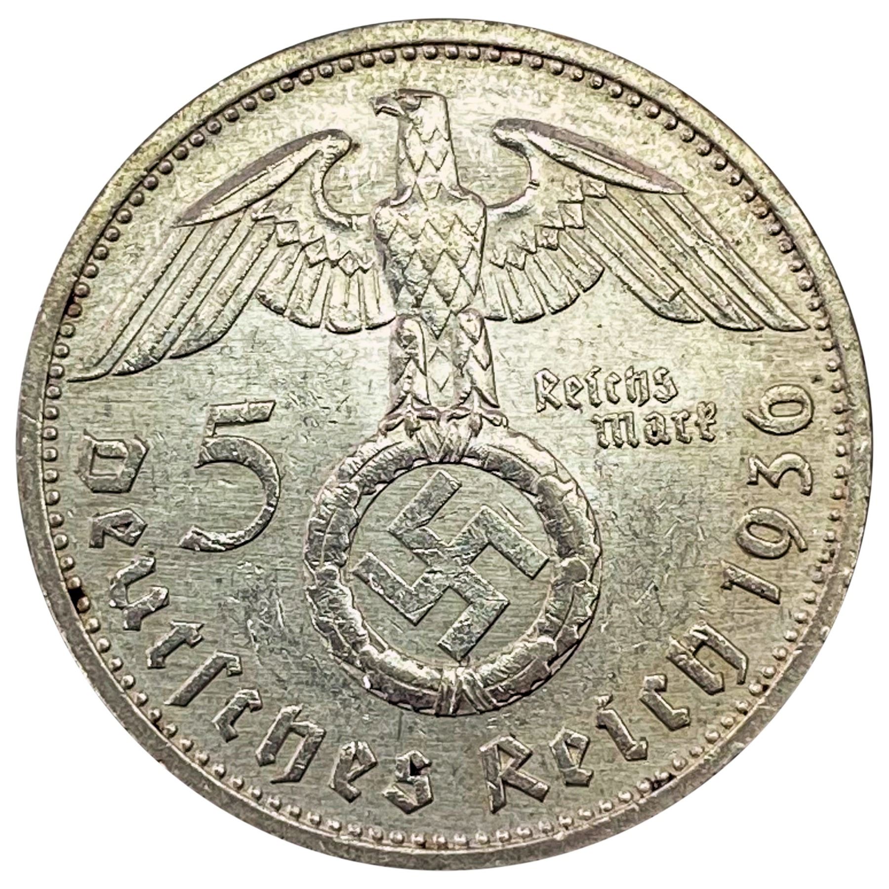 1936-E Germany Silver 5 Reichsmark CLOSELY UNCIRCULATED