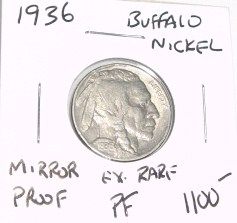 1936 *EXTREMELY RARE MIRROR PROOF* BUFFALO NICKEL RED BOOK VALUE $1100.00+ *NICE EARLY MIRROR PROOF GRADE*!! BUFFALO NICKEL CAME OUT OF SAFE!! ***Coin, Currency & All Items Listed in this auction - Grades, Conditions and Values are not Safe Deposit Coins LLC Responsibilty. Grades, Condition and Values are determined by Consigner(s)& buyer's only.