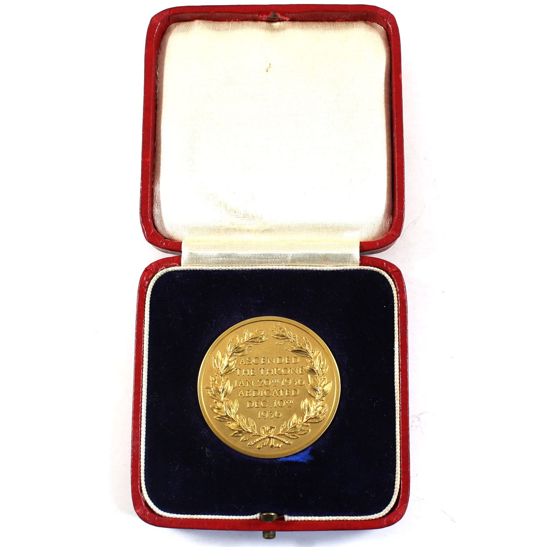 1936 Edward VIII Abdication Medal struck in 22K Gold! Eimer #2041, Made by: Turner & Simpson, 35mm and weighs 34g! Medal comes in original red display case! Medal is in Pristine original condition! Great piece of History!