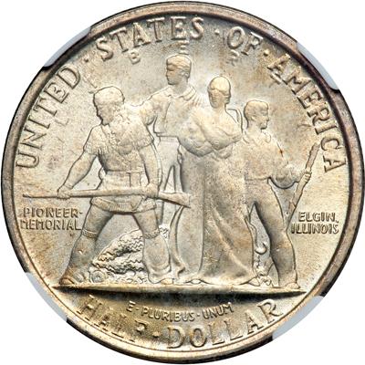 1936 Elgin Half Dollar. NGC graded MS-65. Light golden toning. A gem with frosty luster (PCGS # 9303).