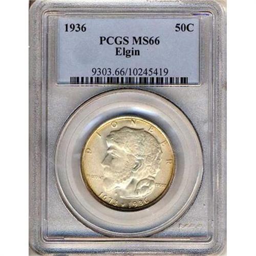 <b>1936 Elgin Half Dollar. PCGS graded MS66.</b> A silvery bright specimen glowing with original gold-toned mint bloom. Sharply struck on obverse and reverse.