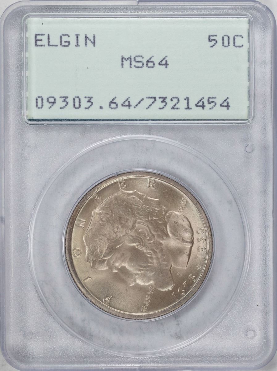 One 1936 Elgin Commemorative Half Dollar Coin PCGS MS64 Old Green Rattler.