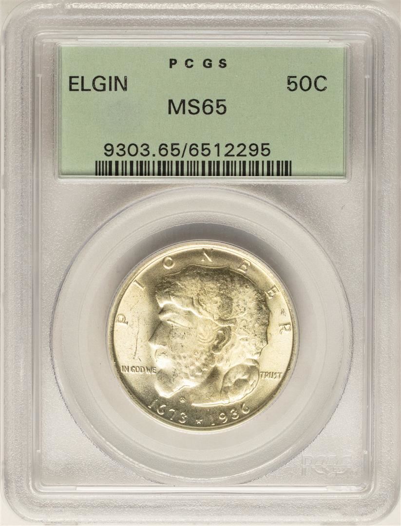 One 1936 Elgin Commemorative Half Dollar Coin PCGS MS65 Old Green Holder. PCGS Graded.