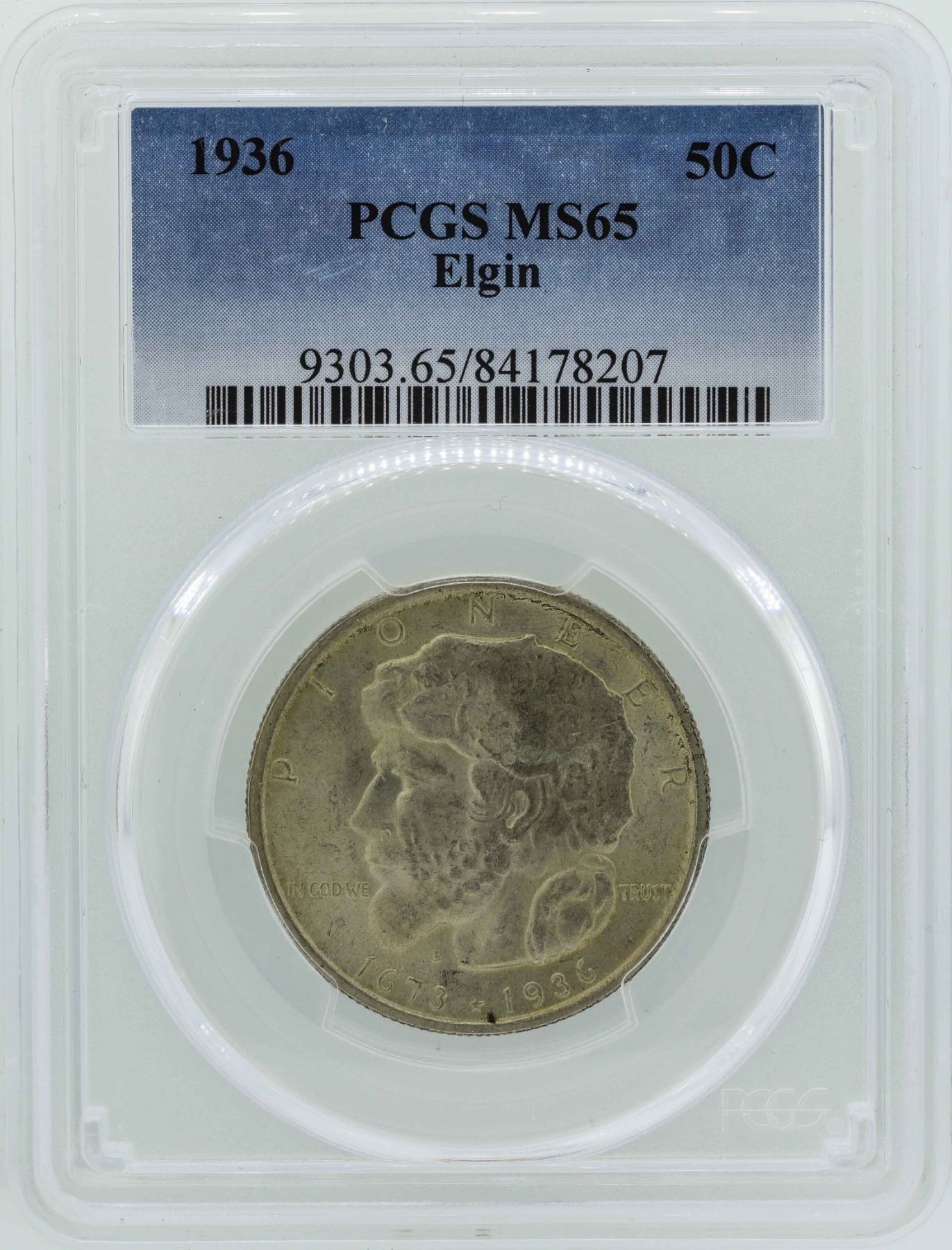 One 1936 Elgin Illinois Centennial Commemorative Half Dollar Coin PCGS MS65.