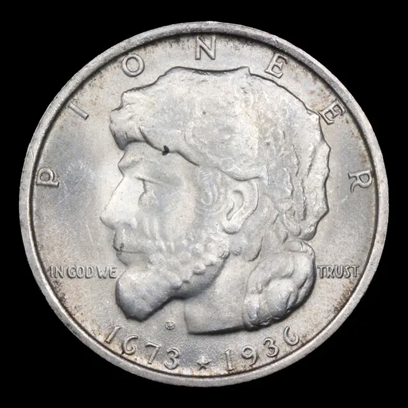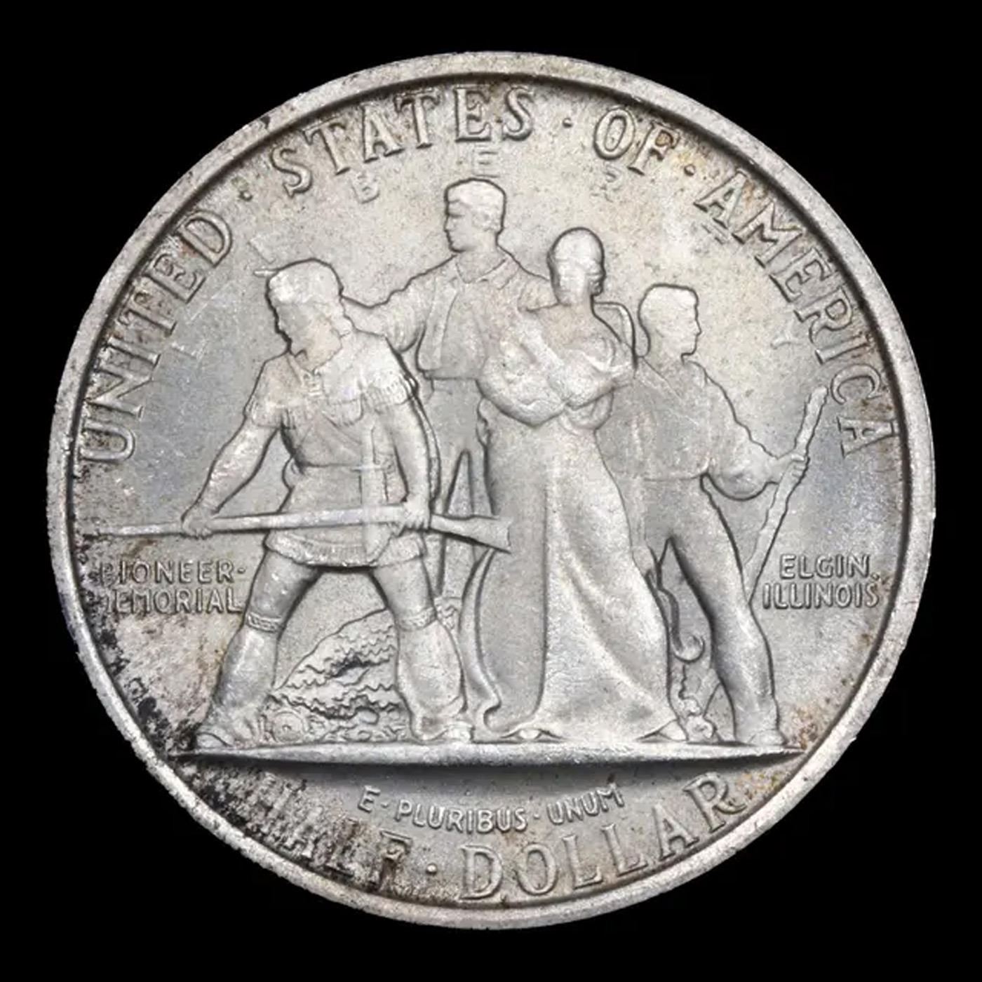 1936 Elgin Old Commem Half Dollar 50c Grades Choice+ Unc. This issue is rarely, if ever, found fully struck in the highest points of obverse and reverse. The infant held in its mother’s arms is almost always indistinct. When checking for wear always check for such wear on the pioneer’s cheekbone or the rifleman’s left shoulder.
