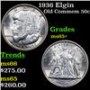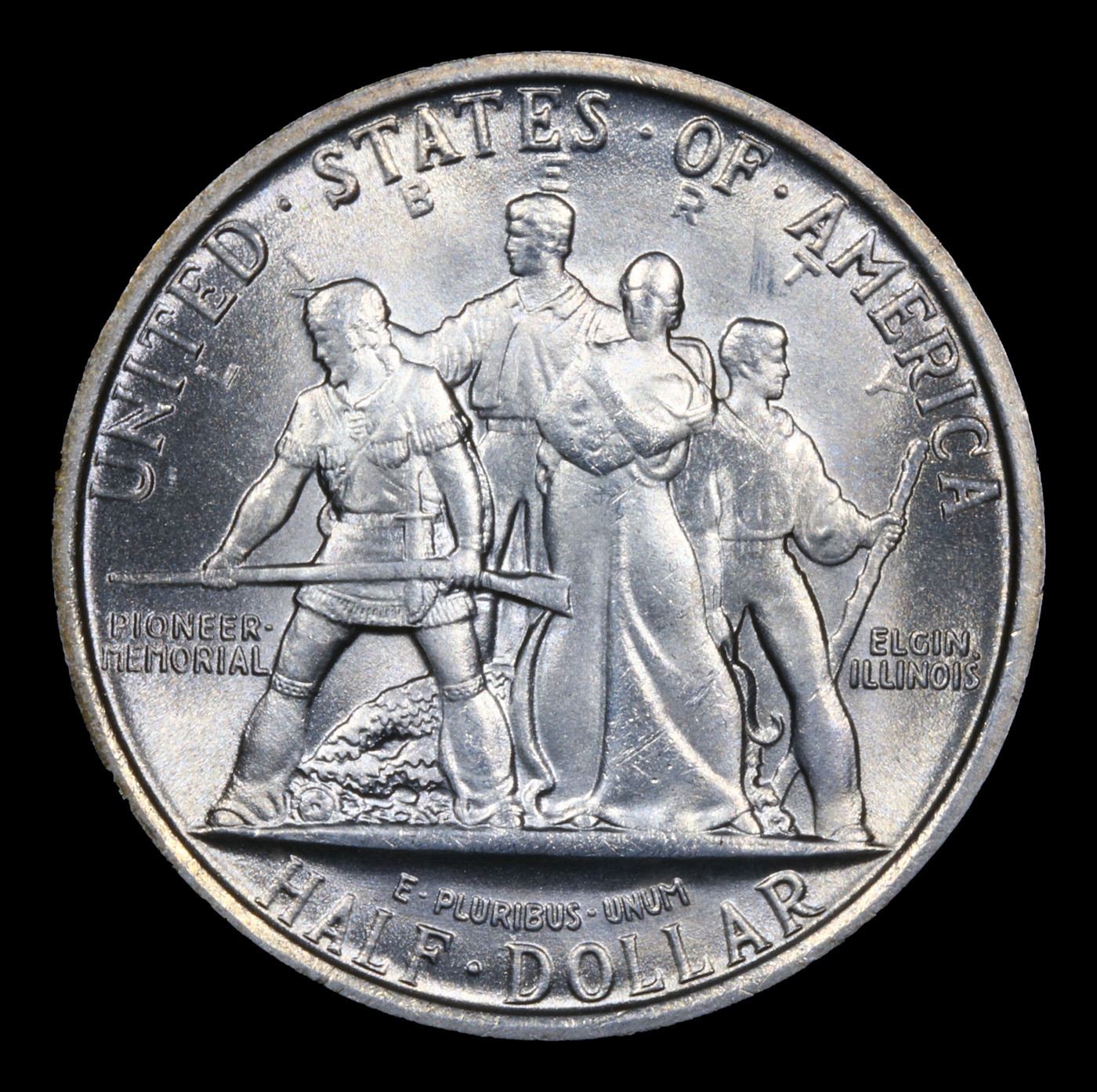 1936 Elgin Old Commem Half Dollar 50c Grades GEM+ Unc. This issue is rarely, if ever, found fully struck in the highest points of obverse and reverse. The infant held in its mother’s arms is almost always indistinct. When checking for wear always check for such wear on the pioneer’s cheekbone or the rifleman’s left shoulder.