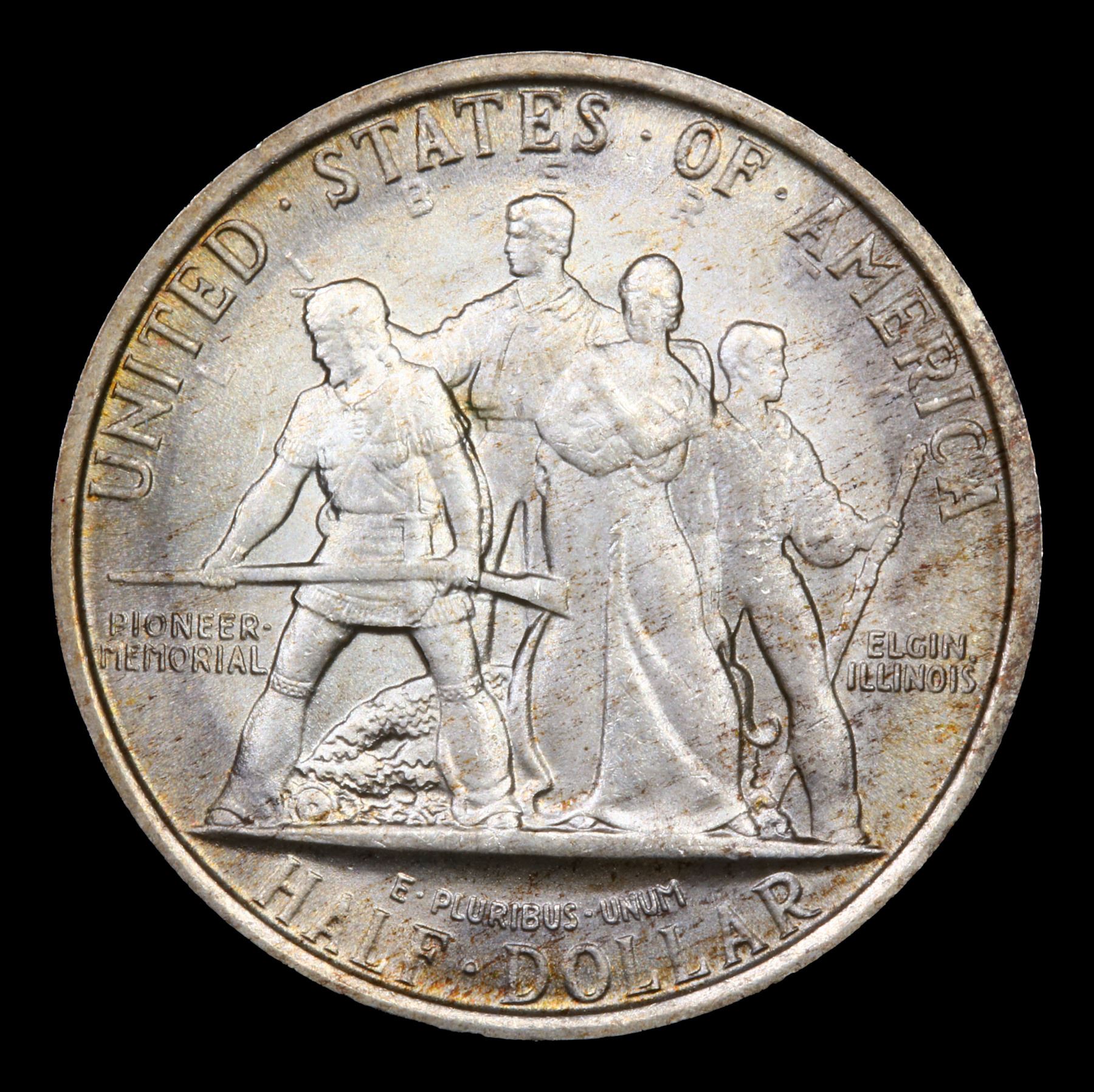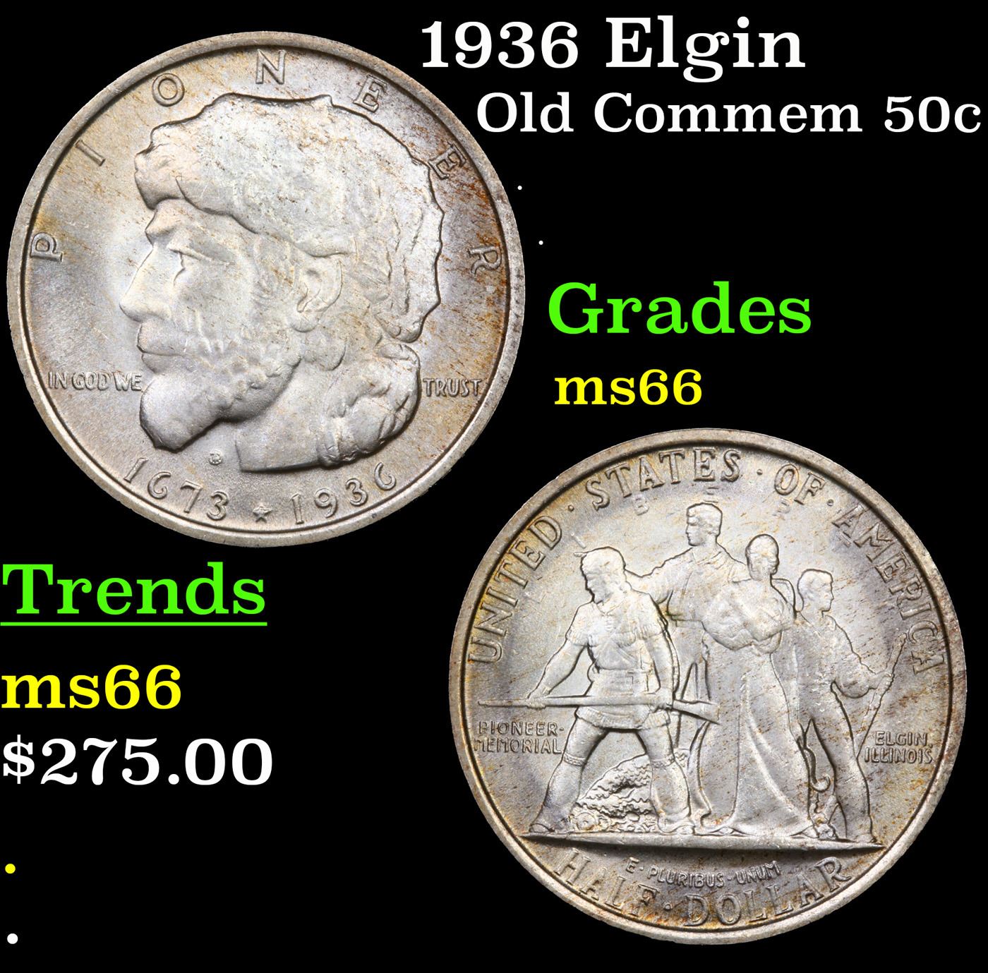 1936 Elgin Old Commem Half Dollar 50c Grades GEM+ Unc. This issue is rarely, if ever, found fully struck in the highest points of obverse and reverse. The infant held in its mother’s arms is almost always indistinct. When checking for wear always check for such wear on the pioneer’s cheekbone or the rifleman’s left shoulder.
