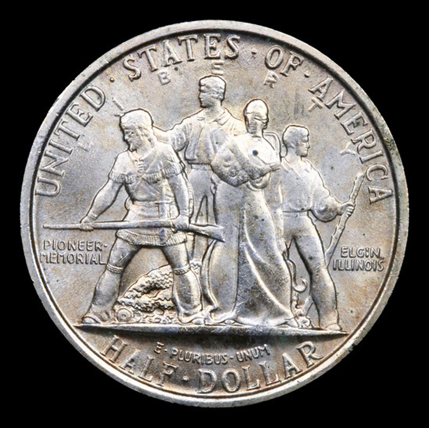 1936 Elgin Old Commem Half Dollar 50c Grades GEM+ Unc. This issue is rarely, if ever, found fully struck in the highest points of obverse and reverse. The infant held in its mother’s arms is almost always indistinct. When checking for wear always check for such wear on the pioneer’s cheekbone or the rifleman’s left shoulder.