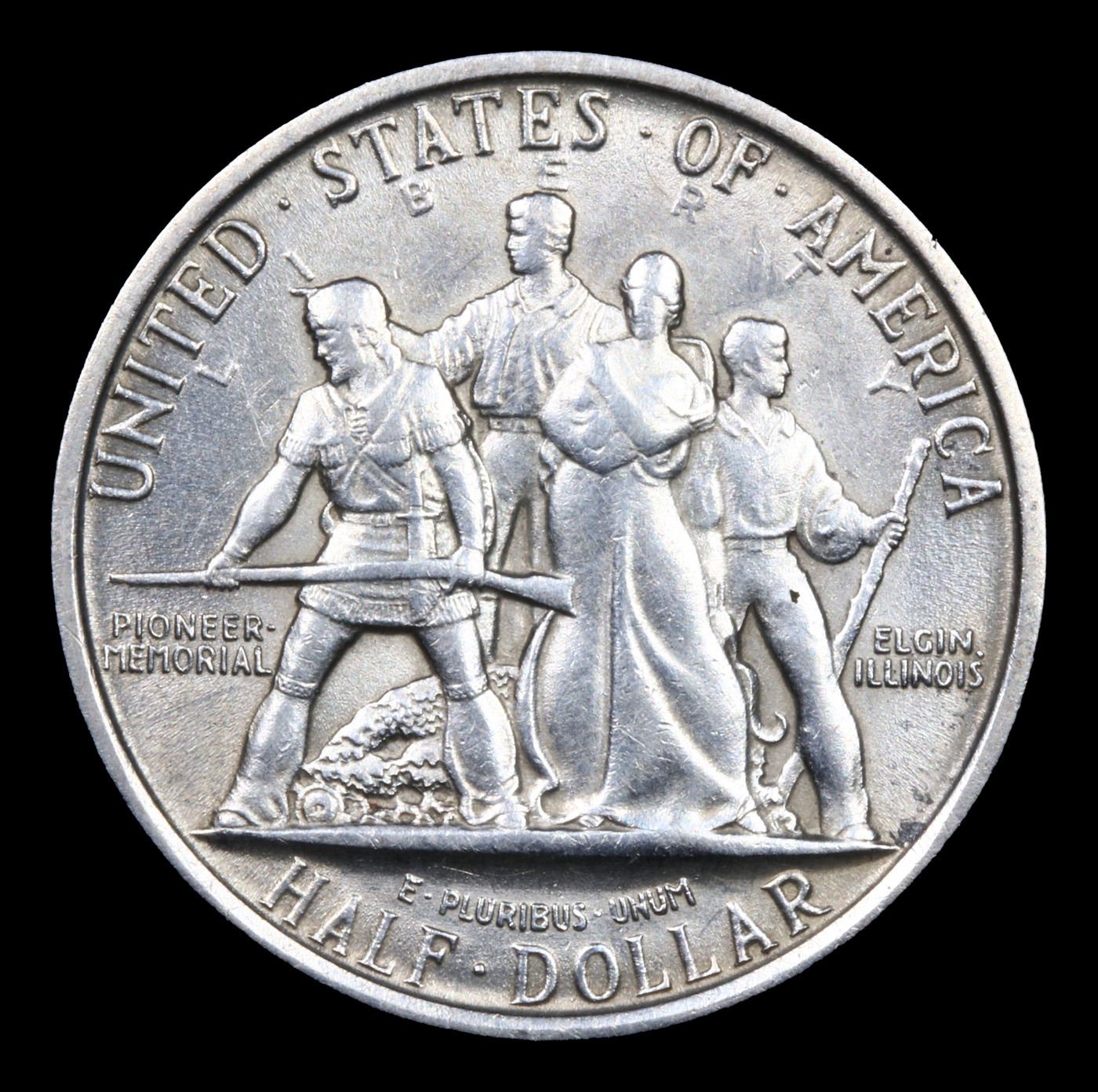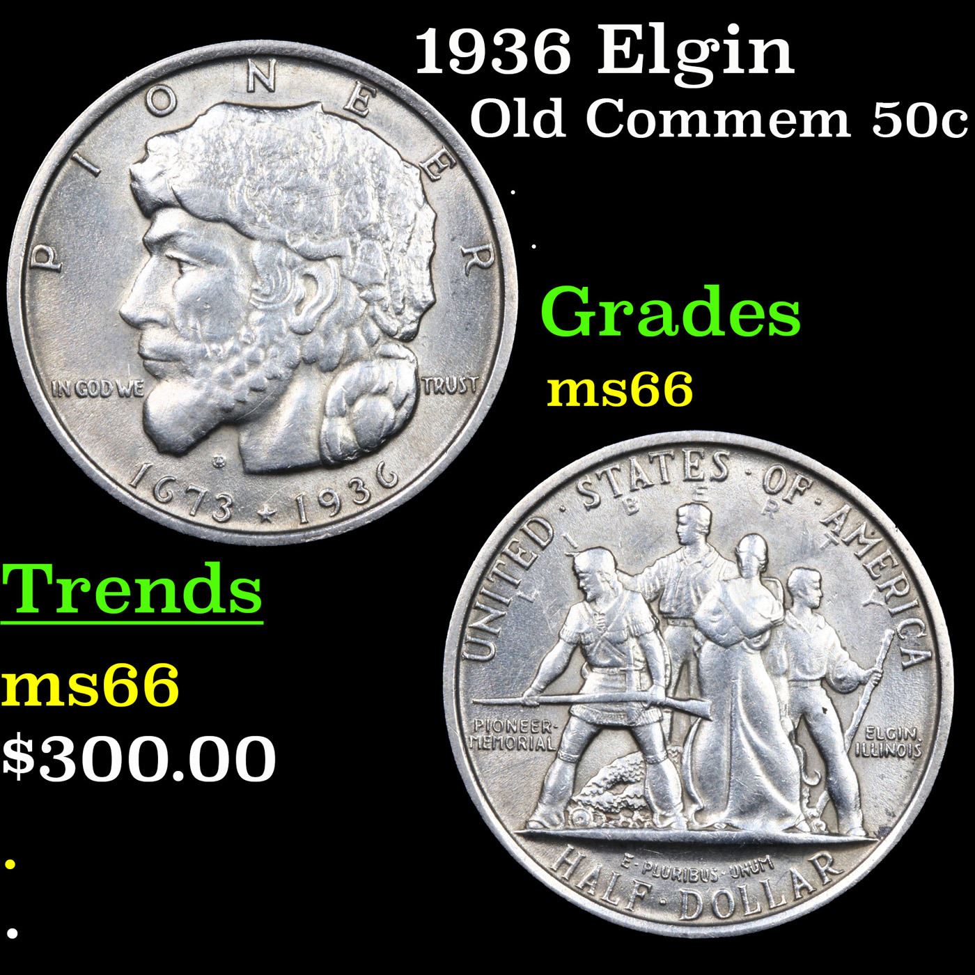 1936 Elgin Old Commem Half Dollar 50c Grades GEM+ Unc. This issue is rarely, if ever, found fully struck in the highest points of obverse and reverse. The infant held in its mother’s arms is almost always indistinct. When checking for wear always check for such wear on the pioneer’s cheekbone or the rifleman’s left shoulder.
