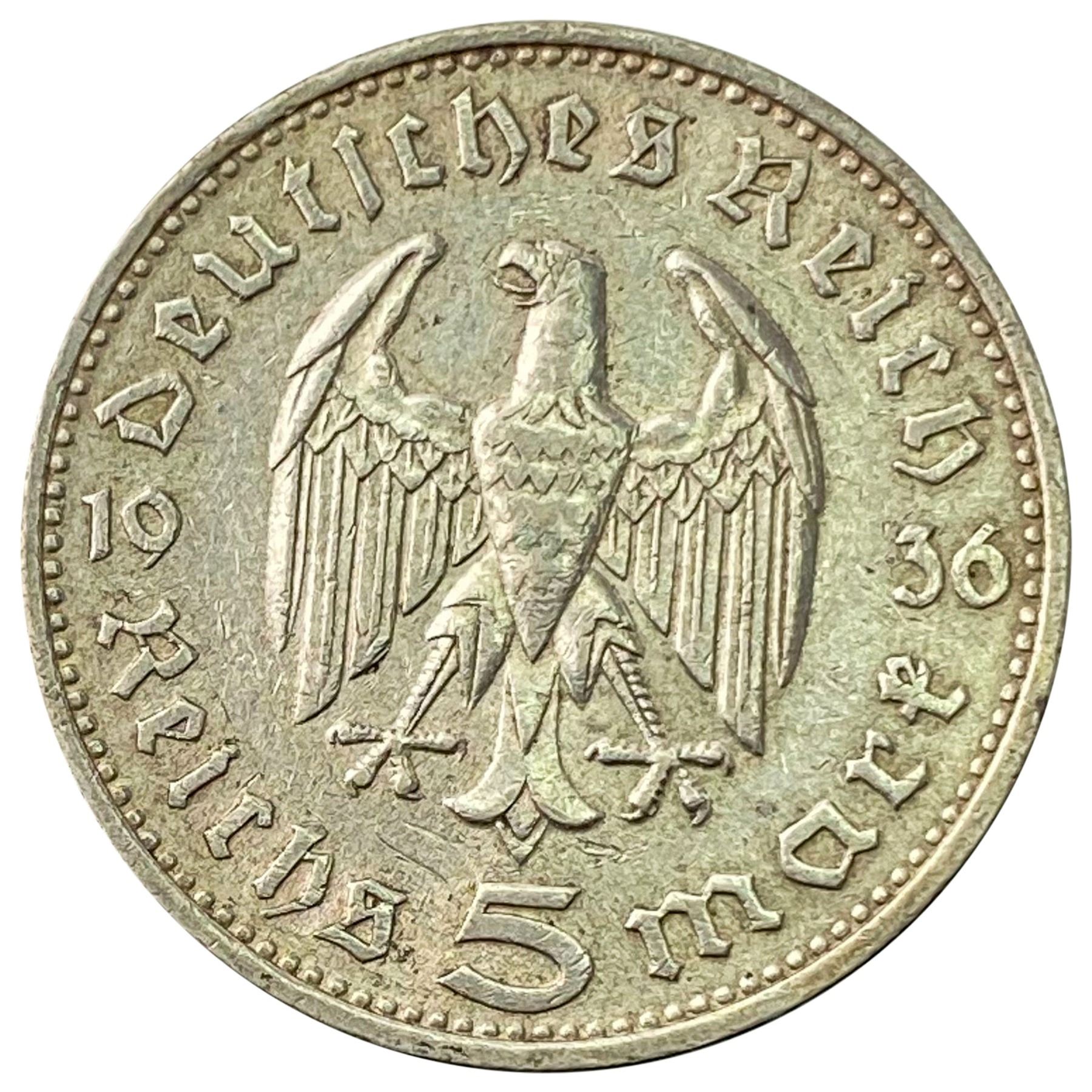 1936-F Germany Silver 5 Mark CLOSELY UNCIRCULATED