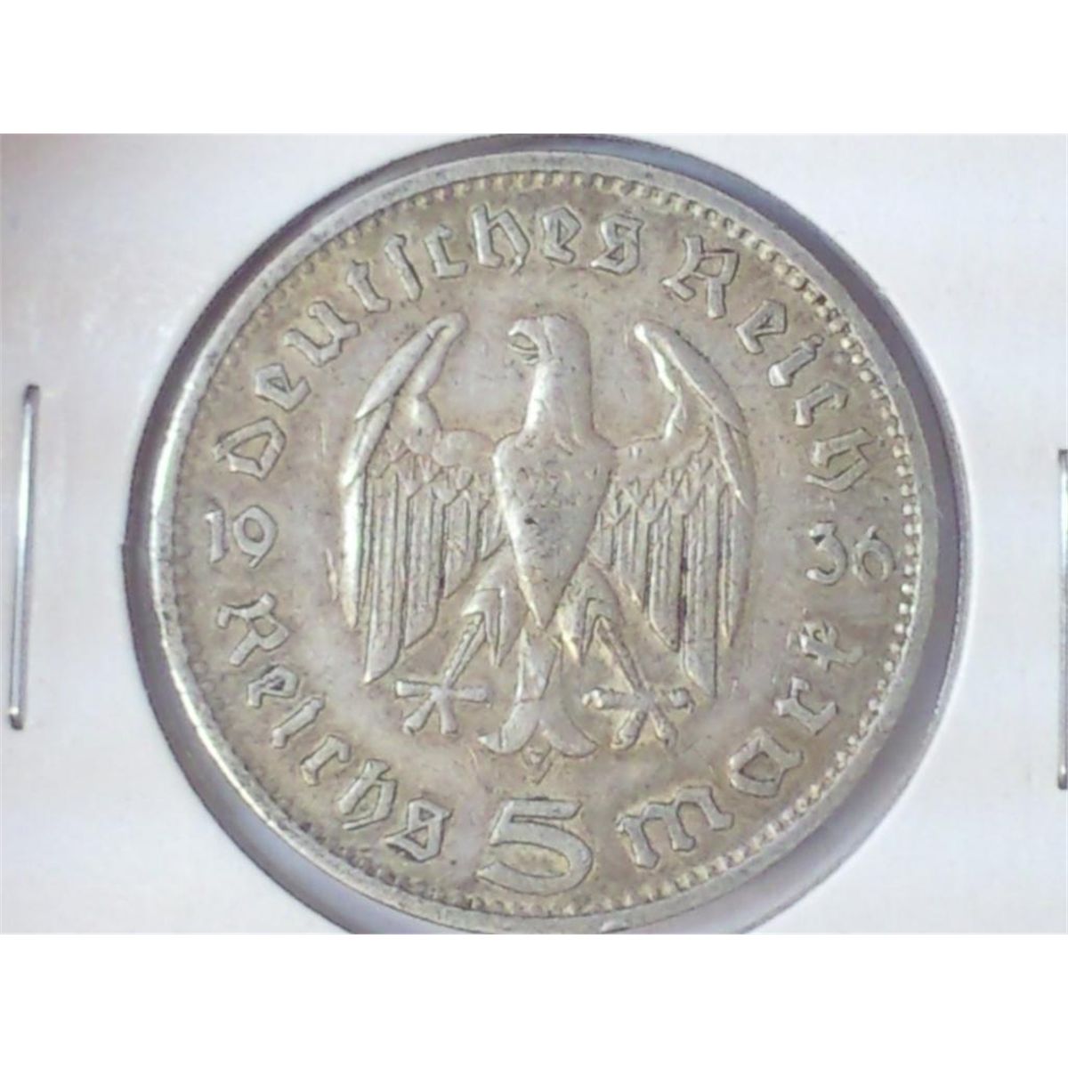 1936-G GERMAN SILVER 5 MARK .4016 OZ. ASW