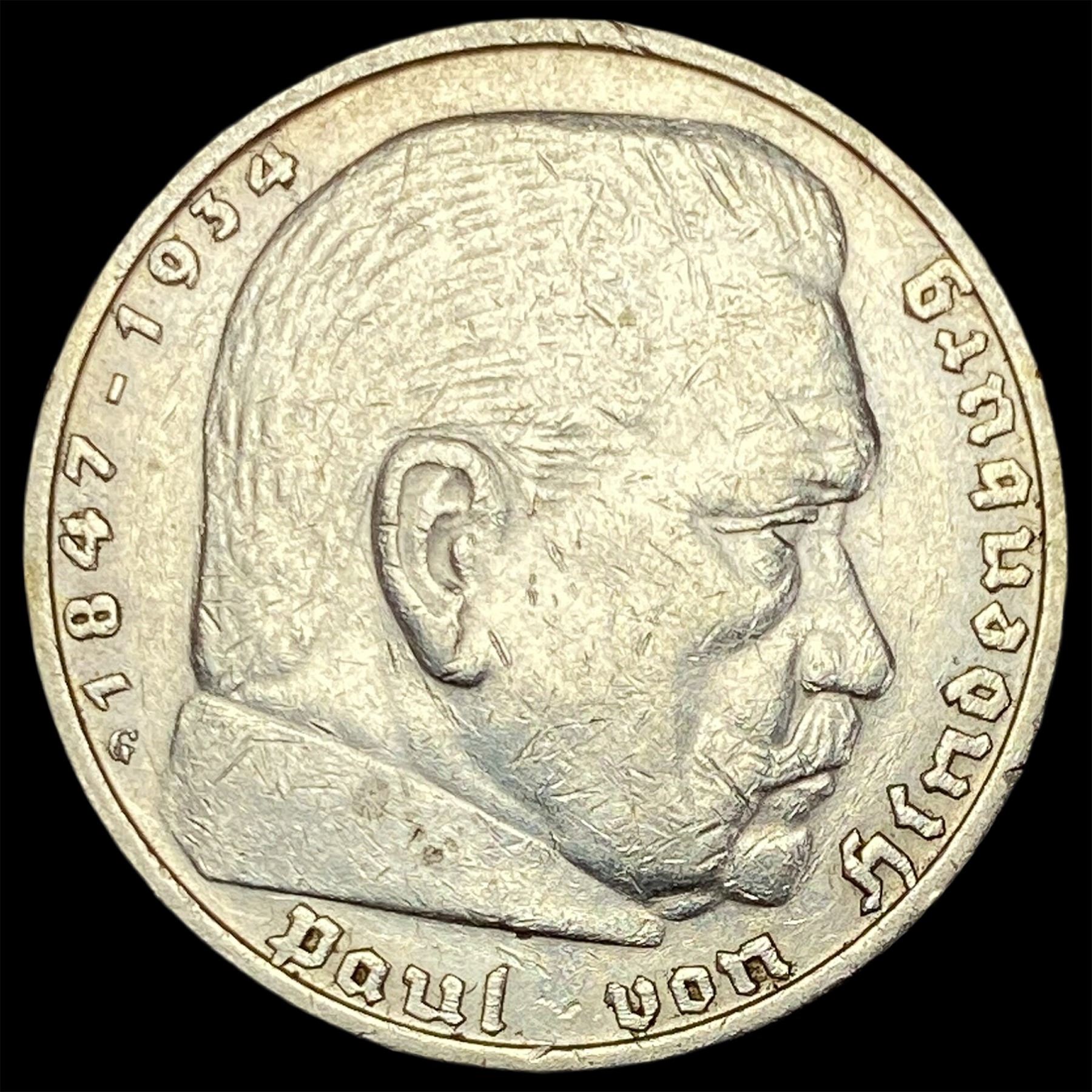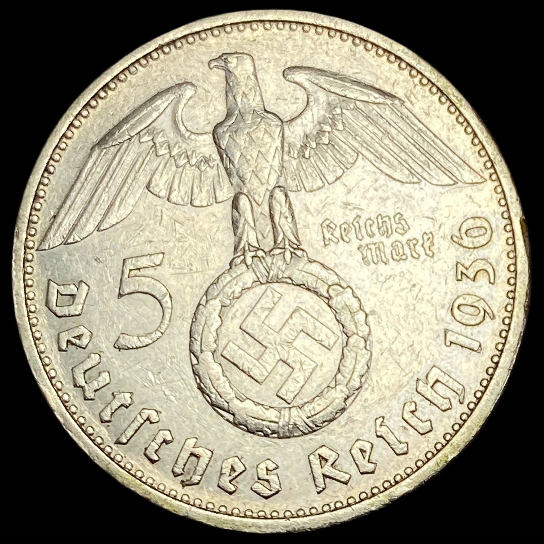 1936-G Germany SIlver 5 Reichsmark CLOSELY UNCIRCULATED