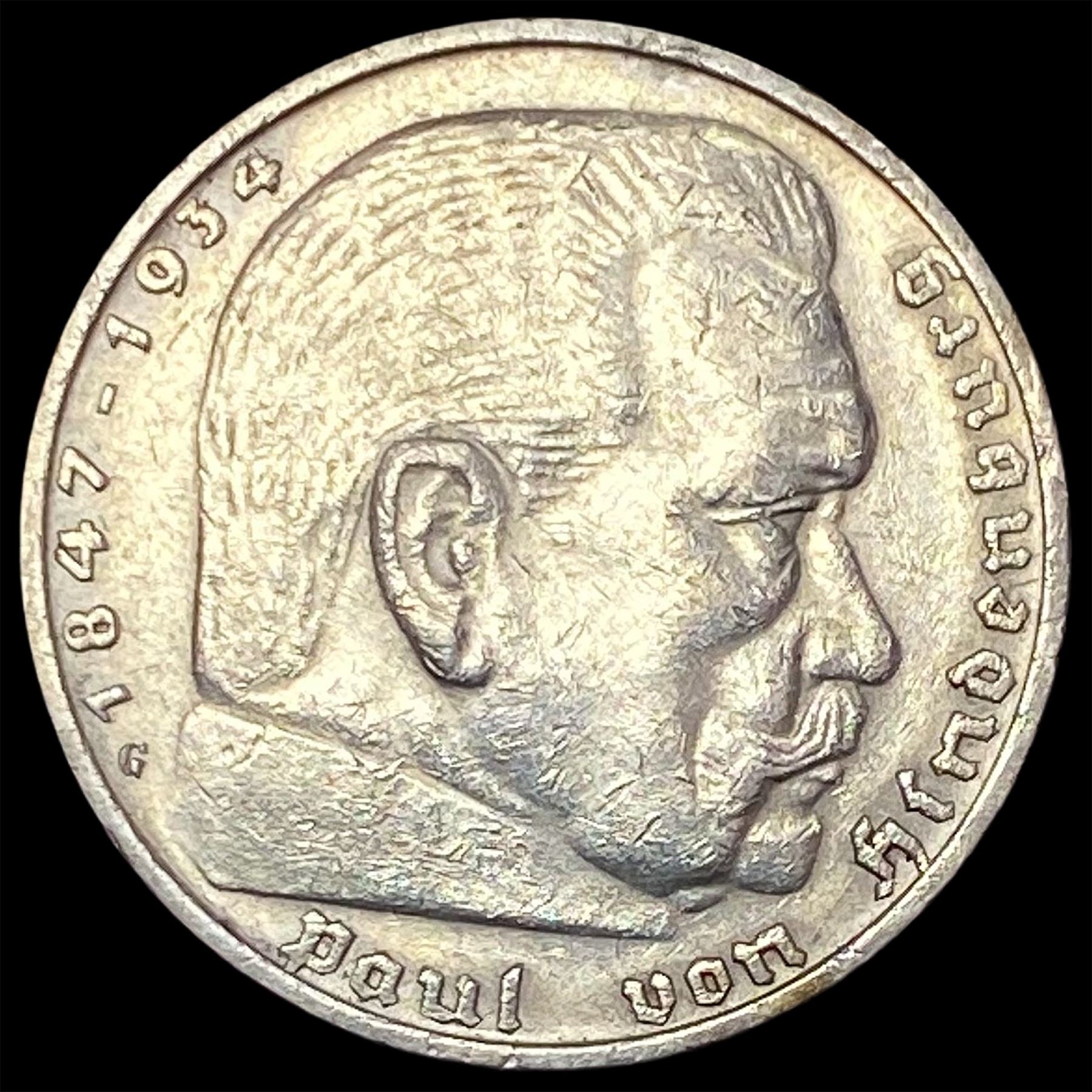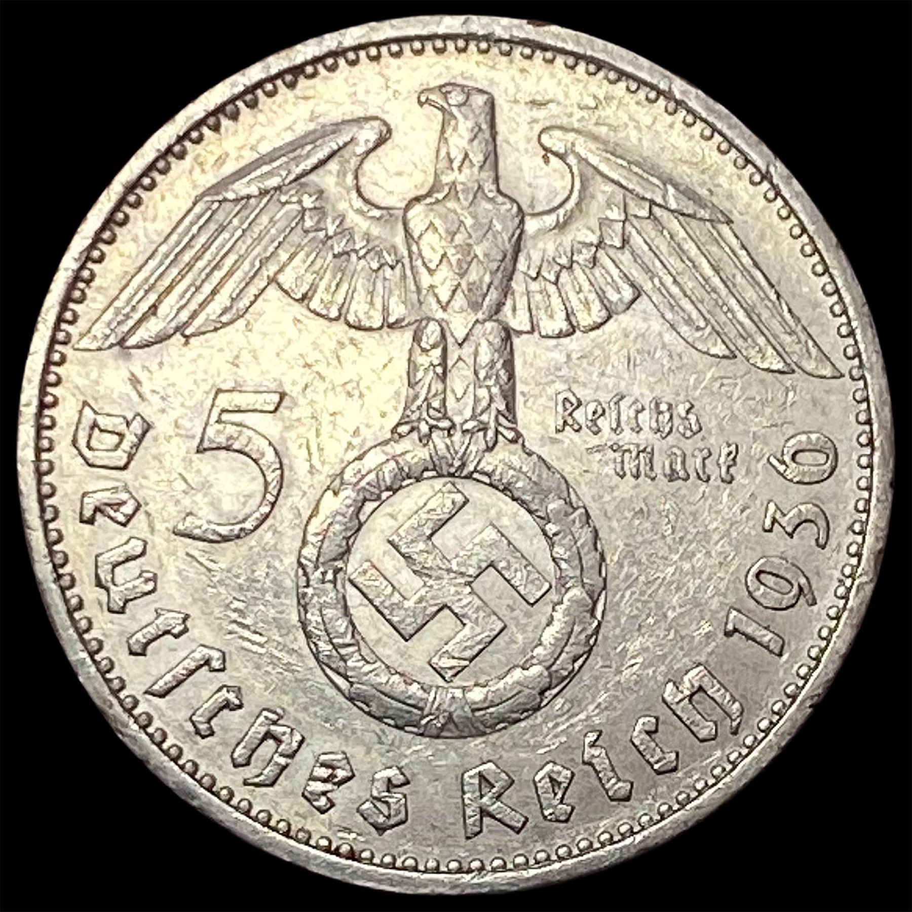 1936-G Germany Silver 5 Reichsmark CLOSELY UNCIRCULATED