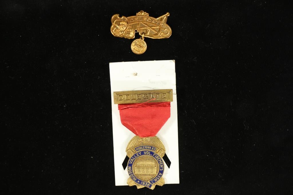 OF MIDDLETOWN NEW YORK DELEGATE. 2 PIECES, BAR WITH RIBBON AND MEDAL AND BAR WITH PENDANT
