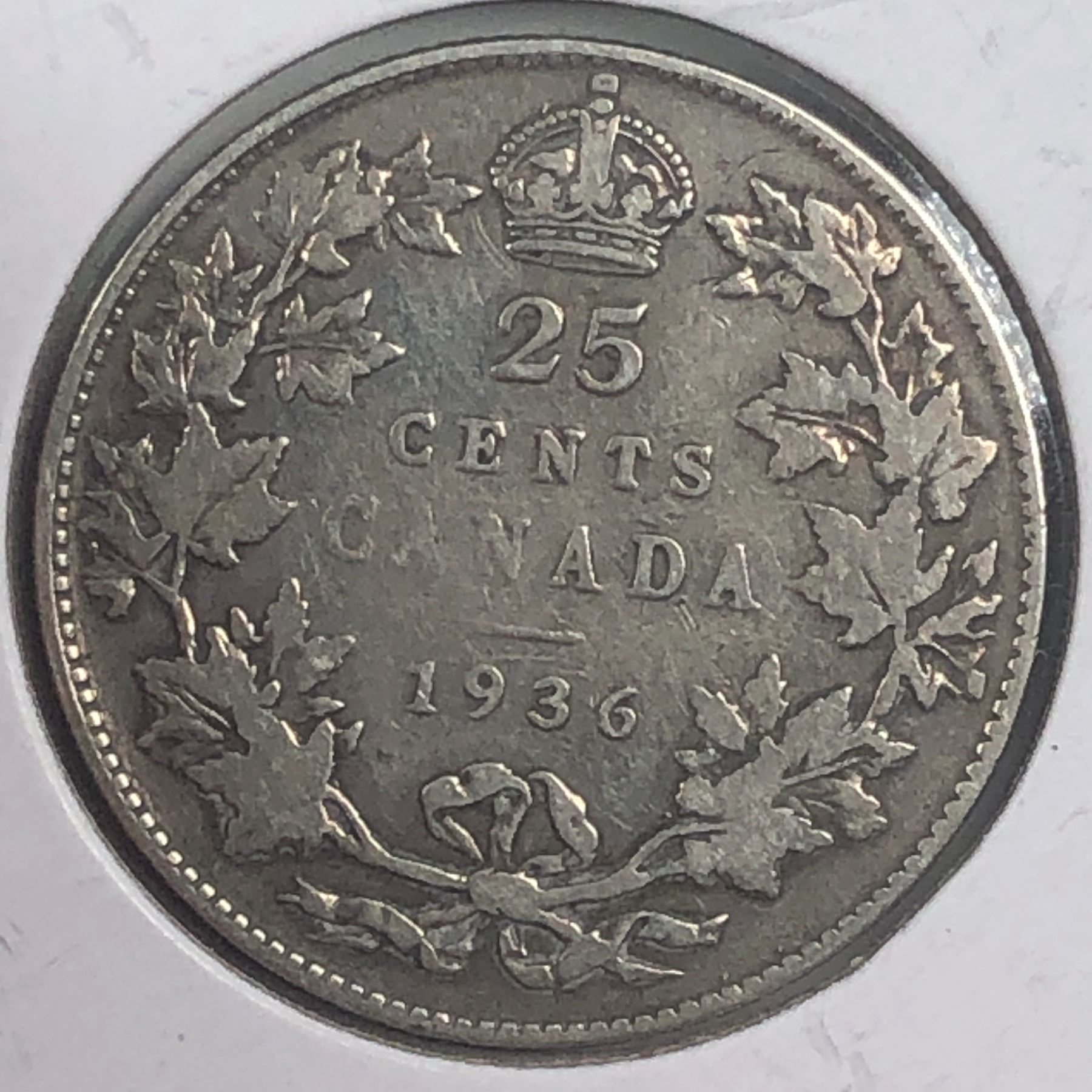 1936 King George V 25 Cents F+