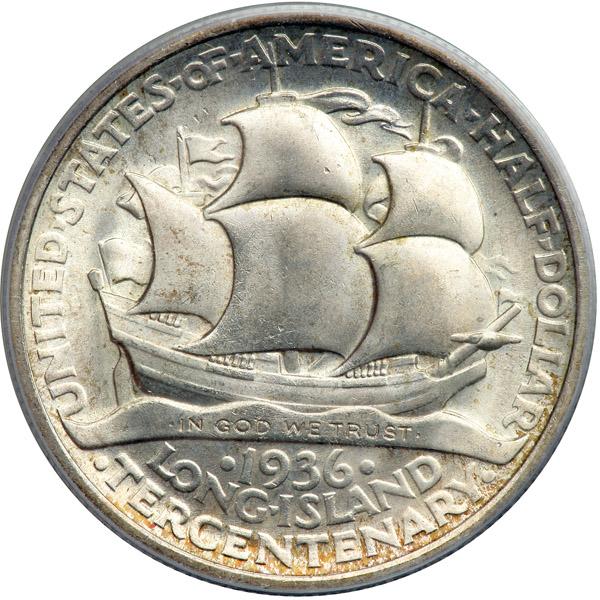 1936 Long Island Half Dollar. PCGS graded MS-65. Delicate light toning with wonderful snappy fresh mint frost everywhere (PCGS # 9322) .