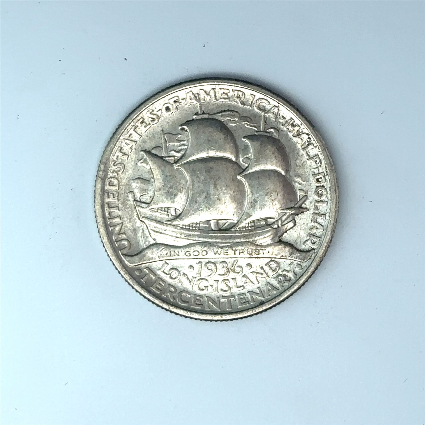 A fully original 1936 Long Island Classic Commemorative Silver Half Dollar in Choice BU condition. A commemorative that is usually seen cleaned, this 1936 Long Island Classic Commemorative Silver Half Dollar is fully original and has beautiful clean fields with a hint of lavender highlights. The classic commemoratives are a great future investment. NICE!