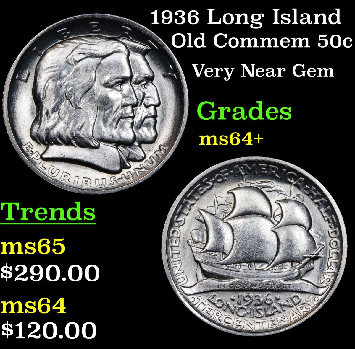 1936 Long Island . Very Near Gem Old Commem Half Dollar 50c Grades Choice+ Unc.