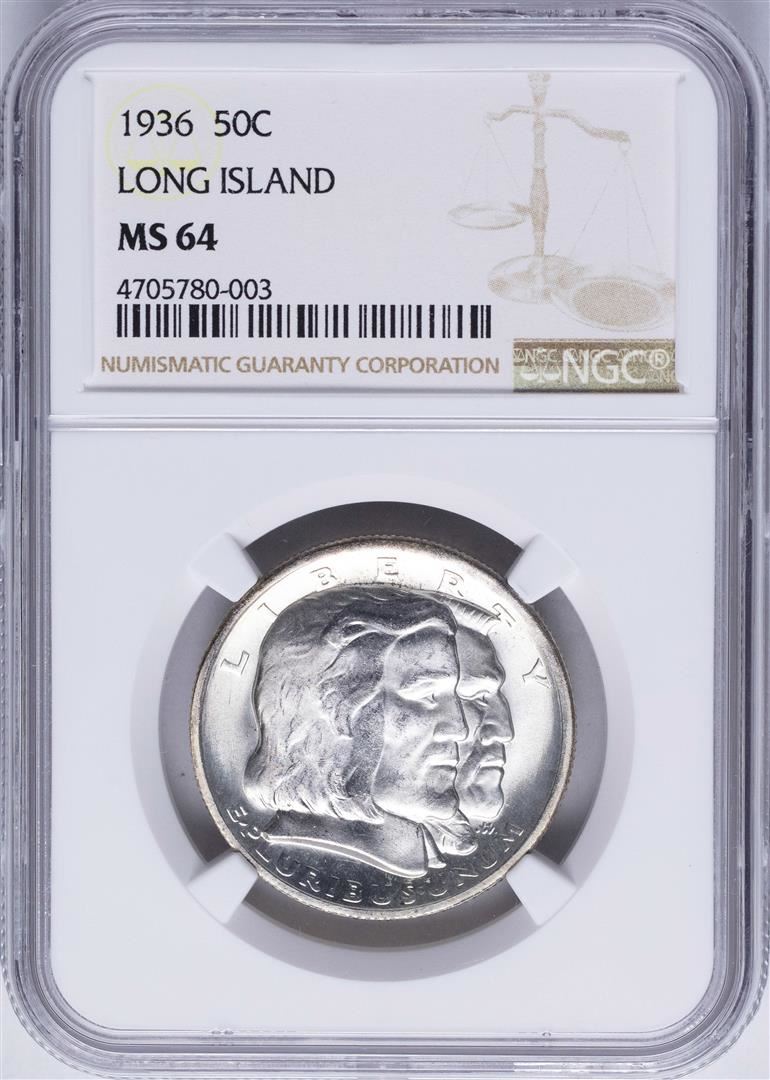 One 1936 Long Island Tercentenary Commemorative Half Dollar Coin NGC MS64. NGC Certified.
