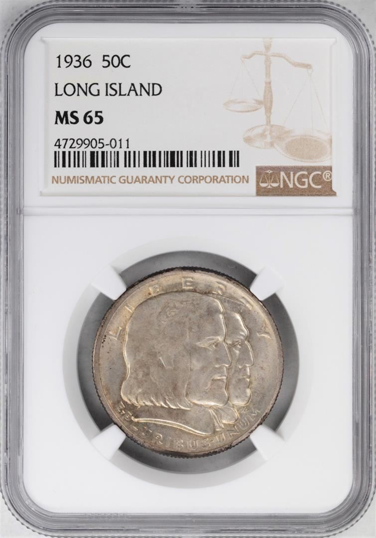 One 1936 Long Island Tercentenary Commemorative Half Dollar Coin NGC MS65. NGC Certified.