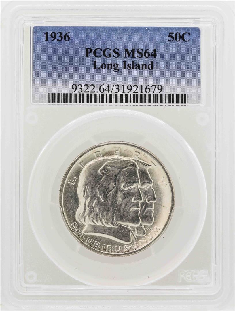 One 1936 Long Island Tercentenary Commemorative Half Dollar Coin PCGS MS64. PCGS Graded.